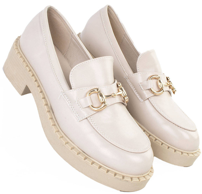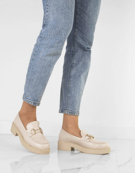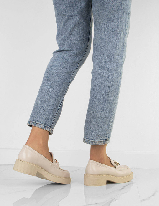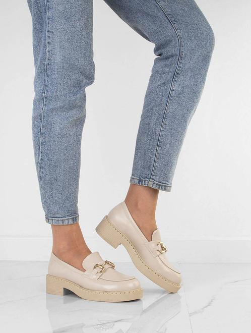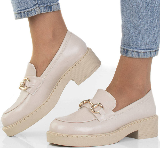 BEŻOWE MOKASYNY NA PLATFORMIE Z ŁAŃCUCHEM MIA