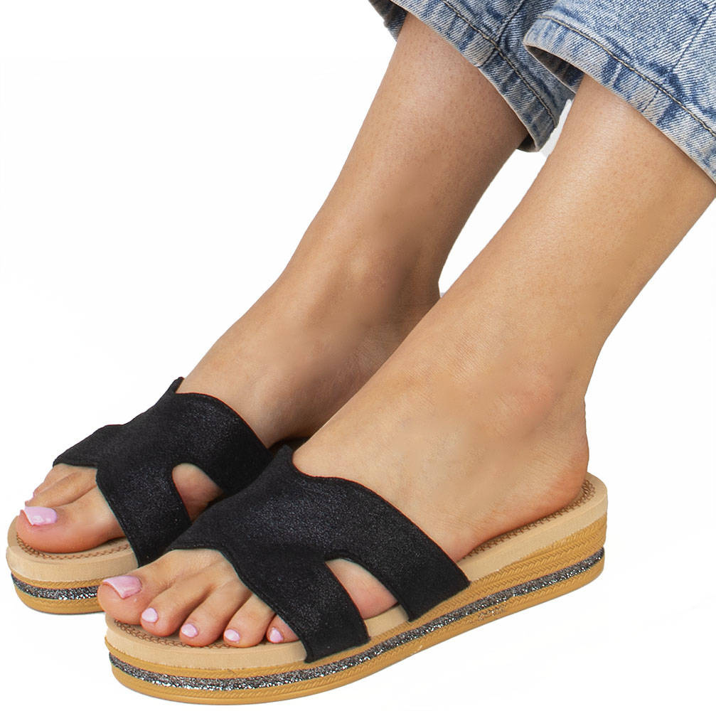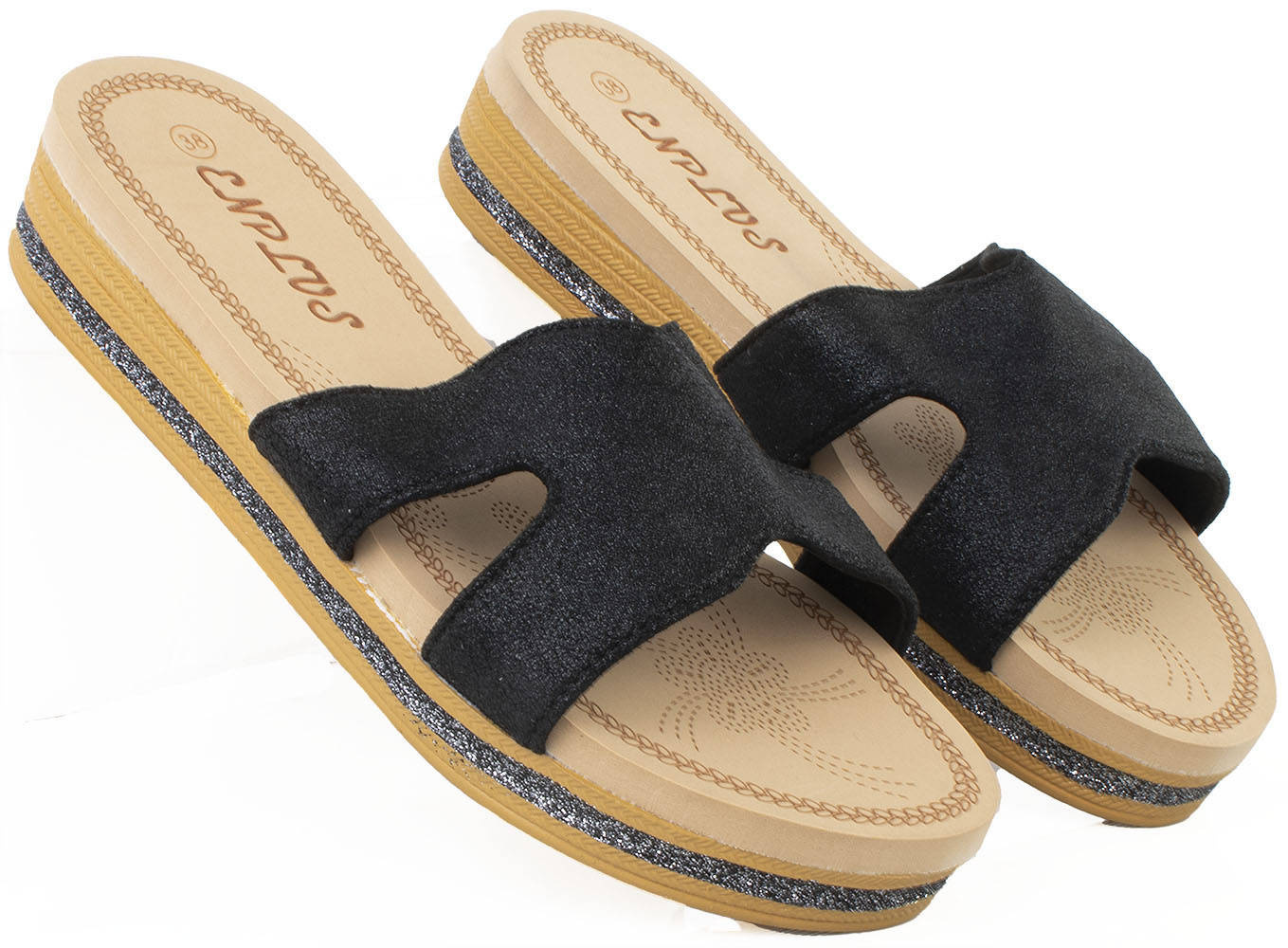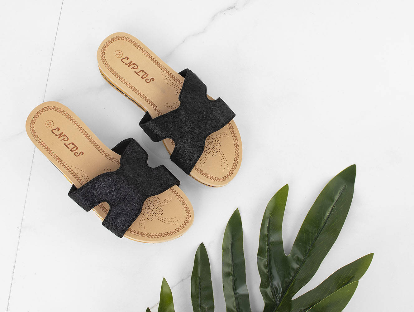 CZARNE KLAPKI PLATFORMA EKOSKÓRA. TE KLAPKI Z EKOSKÓRY TO IDEALNY WYBÓR NA LETNIE SPACERY.