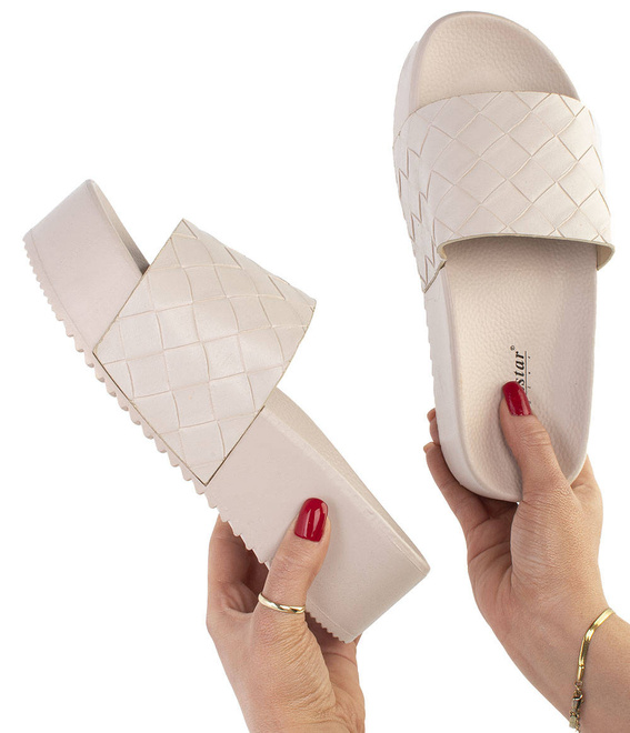 BEŻOWE KLAPKI NA PLATFORMIE NELA
