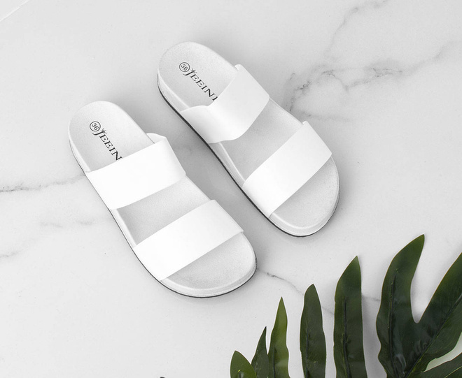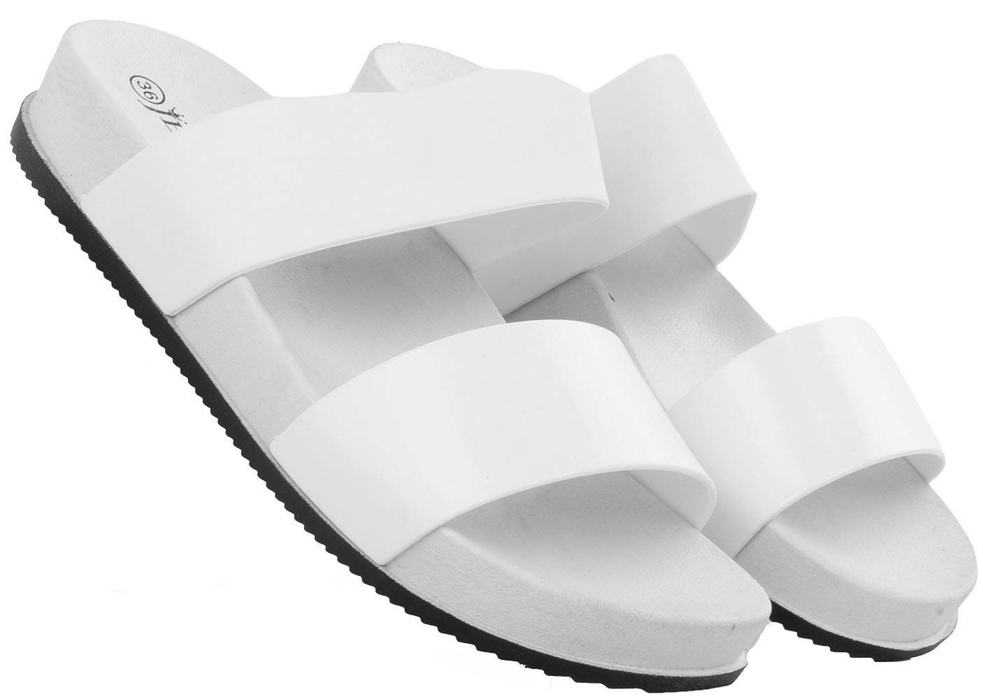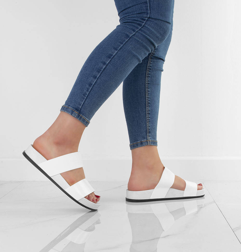 BIAŁE GUMOWE KLAPKI DAMSKIE PASKI ALICE