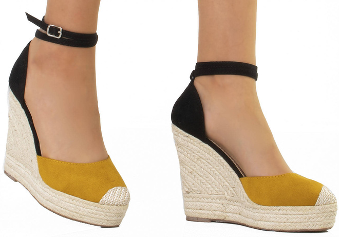 Damskie espadryle na koturnie wykonane ze skóry ekologicznej zamszowej. Model na stabilnej koturnie, wokół obszytej sznurkiem jutowym. Dopełnią każdą letnią stylizację !