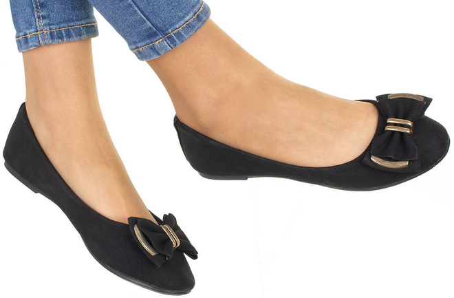 • Klasyczny model balerinek damskich wykonany ze skóry ekologicznej matowej. Model na płaskiej podeszwie z ozdobną kokardką na przodzie. Pasuje do każdej codziennej stylizacji, zarówno do sukienek jak i spodni!