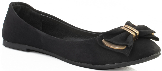 Klasyczny model balerinek damskich wykonany ze skóry ekologicznej matowej. Model na płaskiej podeszwie z ozdobną kokardką na przodzie. Pasuje do każdej codziennej stylizacji, zarówno do sukienek jak i spodni!