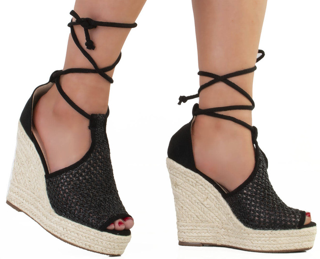 Sandałki na plecionej koturnie. Dopasuj je do jeansowych szortów i koronkowego topu, a będziesz prezentować się zjawiskowo!