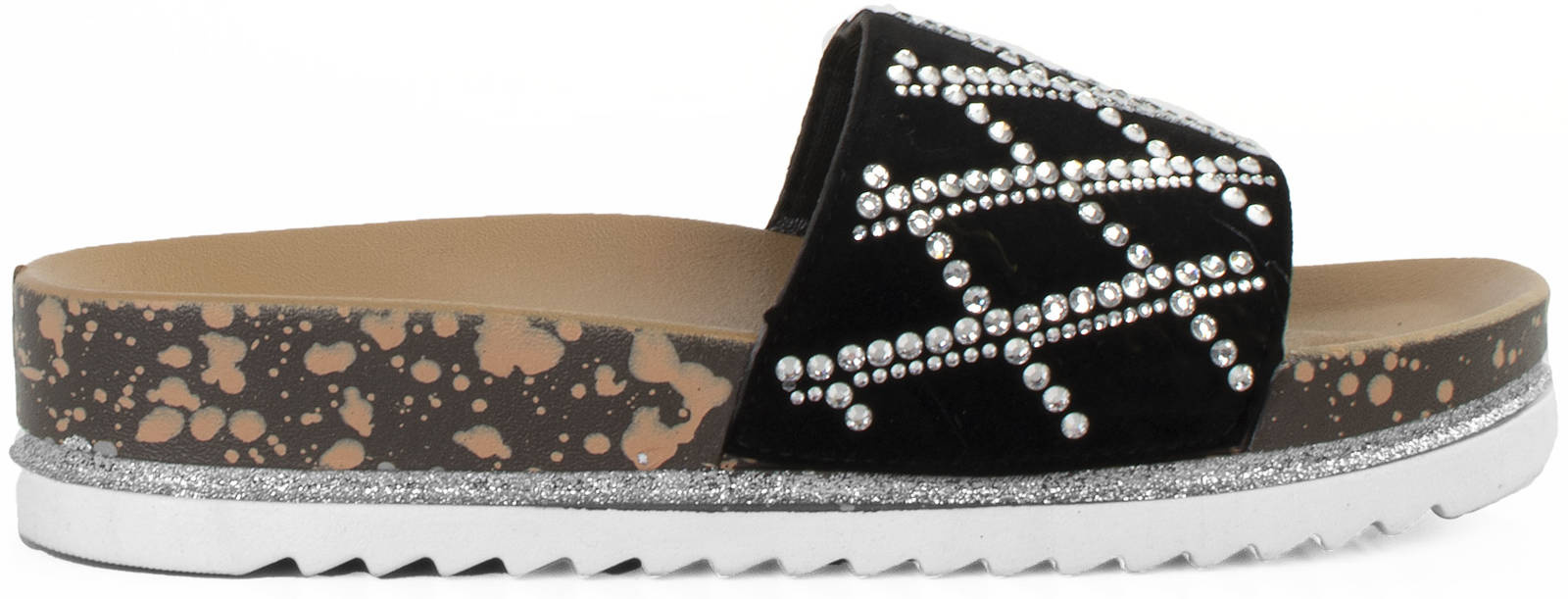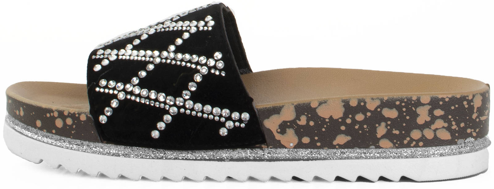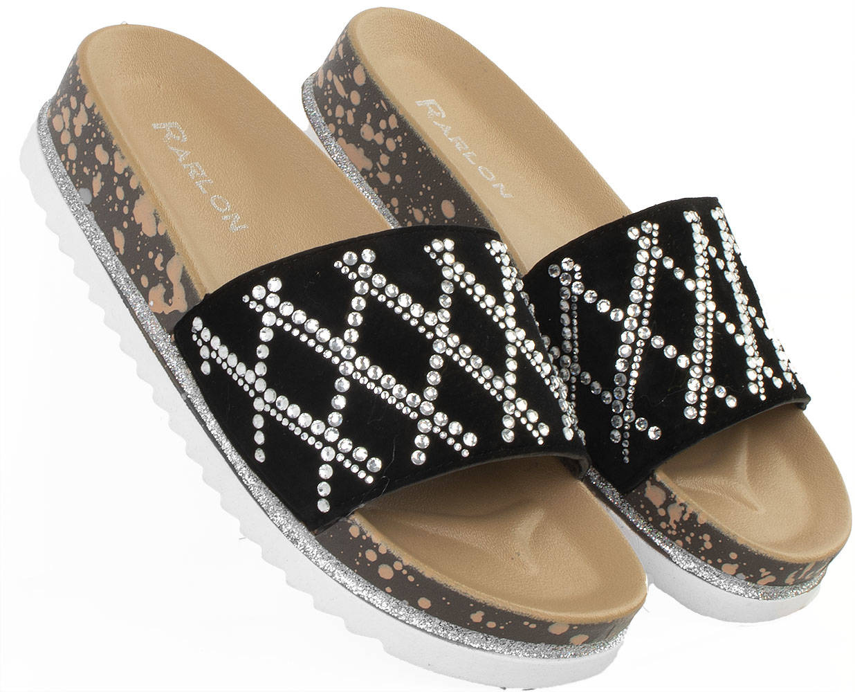 • CZARNE KLAPKI Z CYRKONIAMI NA PLATFORMIE. TO IDEALNY WYBÓR NA LETNIE SPACERY.