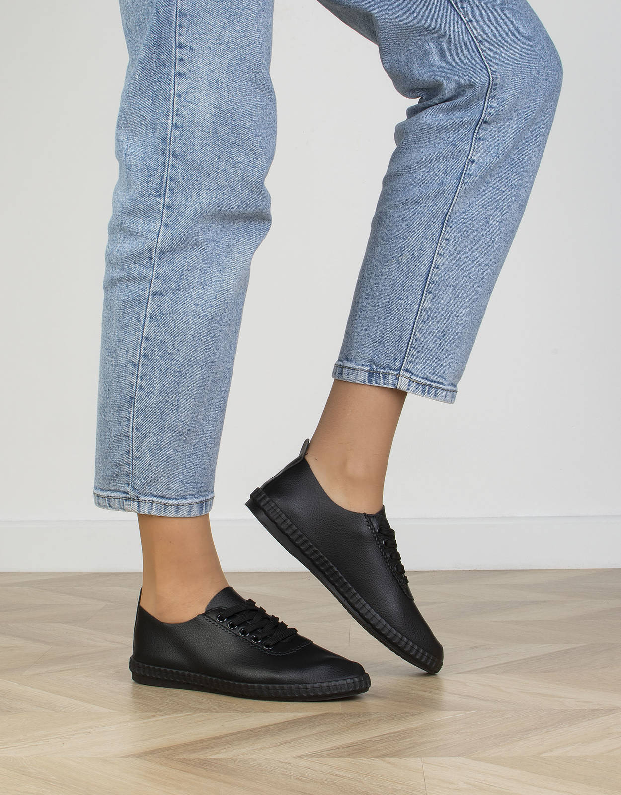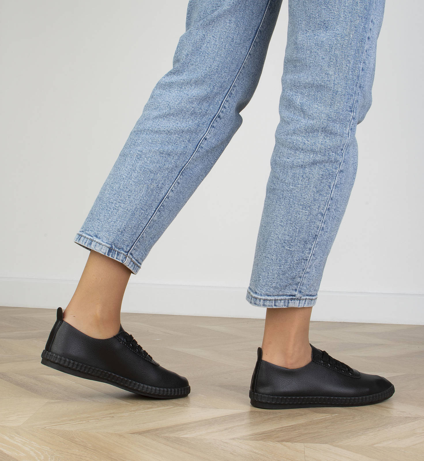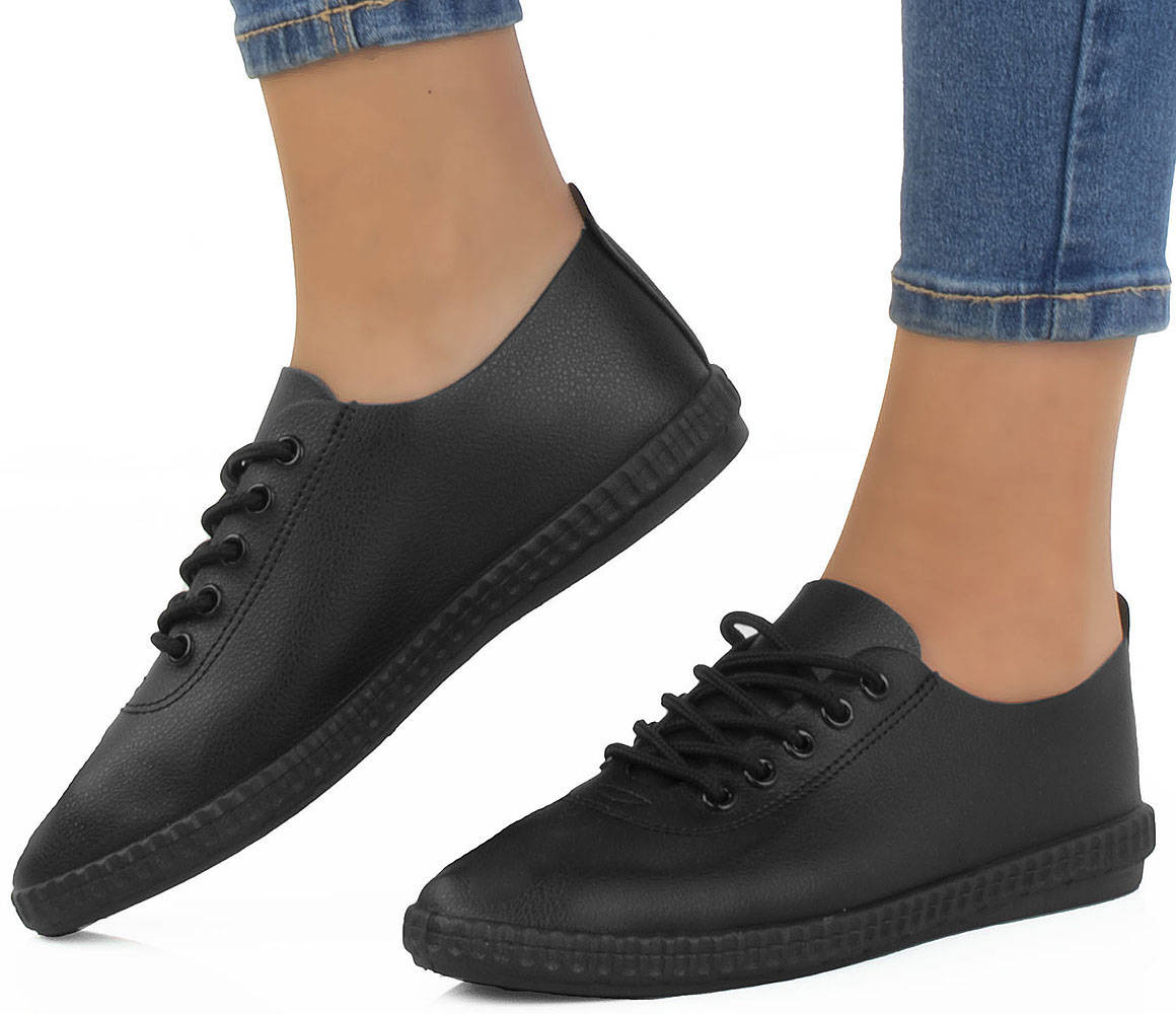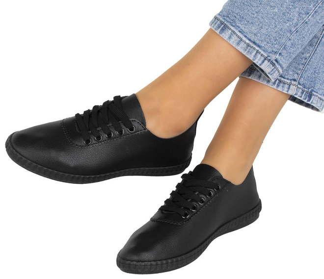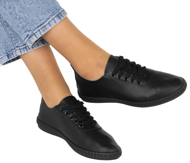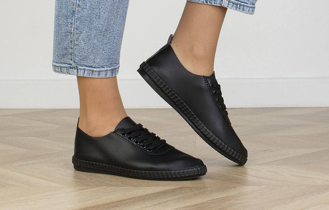 CZARNE TRAMPKI TENISÓWKI SKÓRZANE