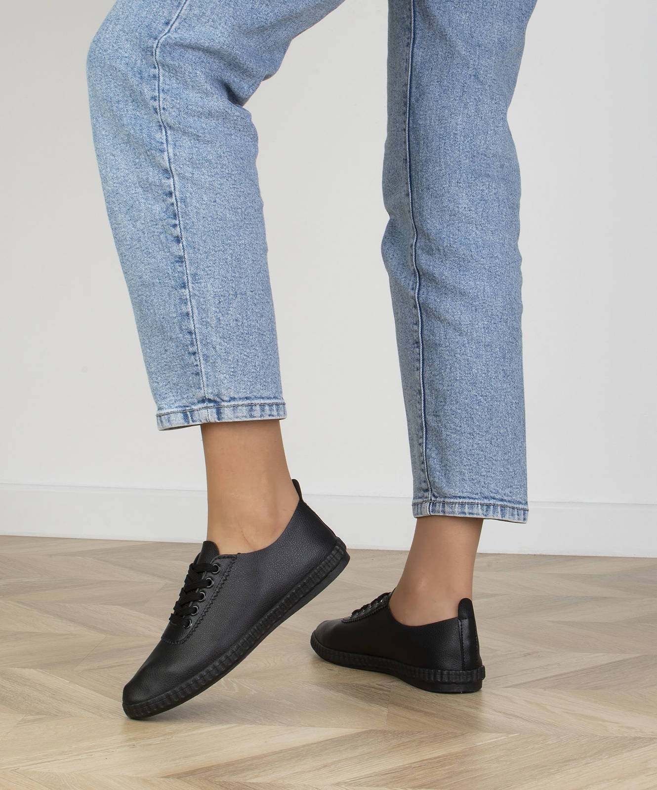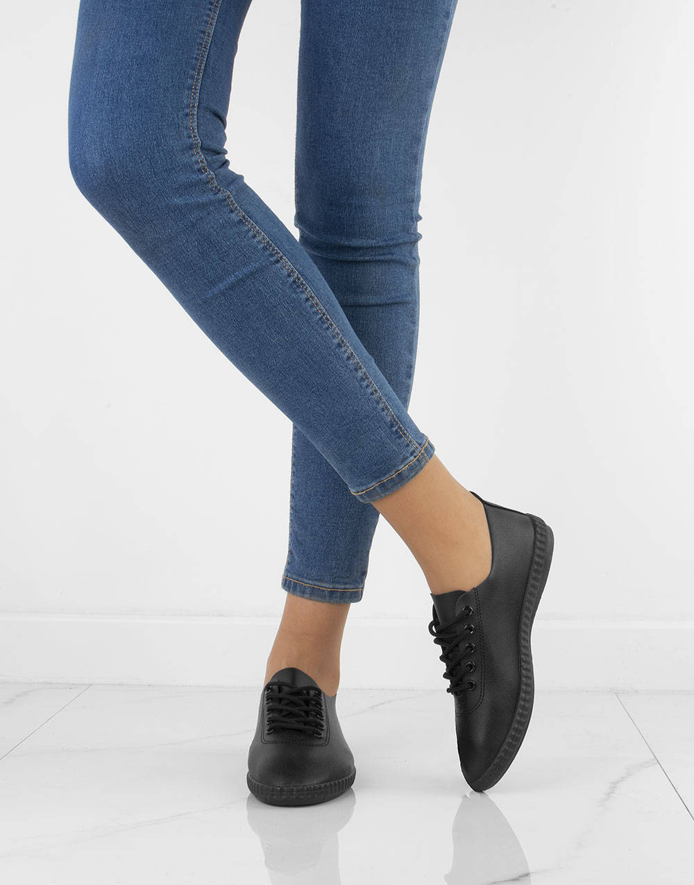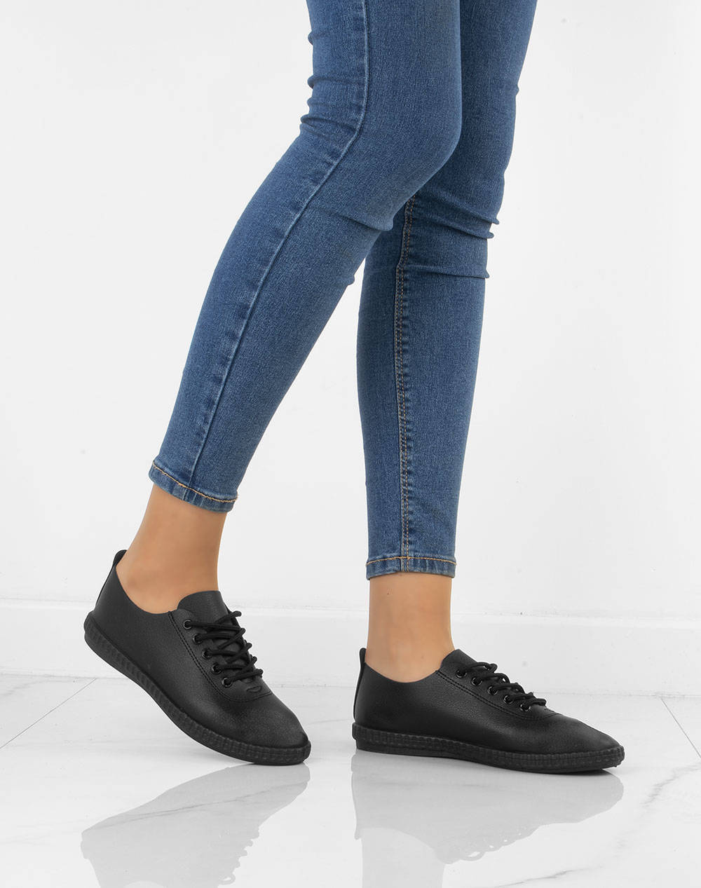 CZARNE TRAMPKI TENISÓWKI SKÓRZANE