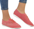 Materiałowe, wygodne trampki damskie. Podeszwa wykonana z tworzywa gumowego. Bok zdobiony srebrnymi dżetami. Model dodatkowo sznurowany, lekkie i wygodne. Idealne na sezon wiosna-lato.