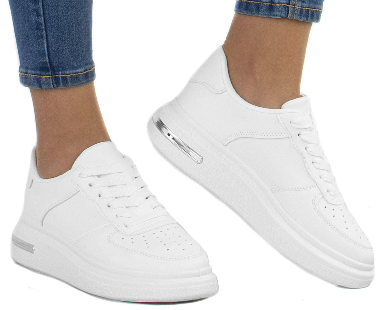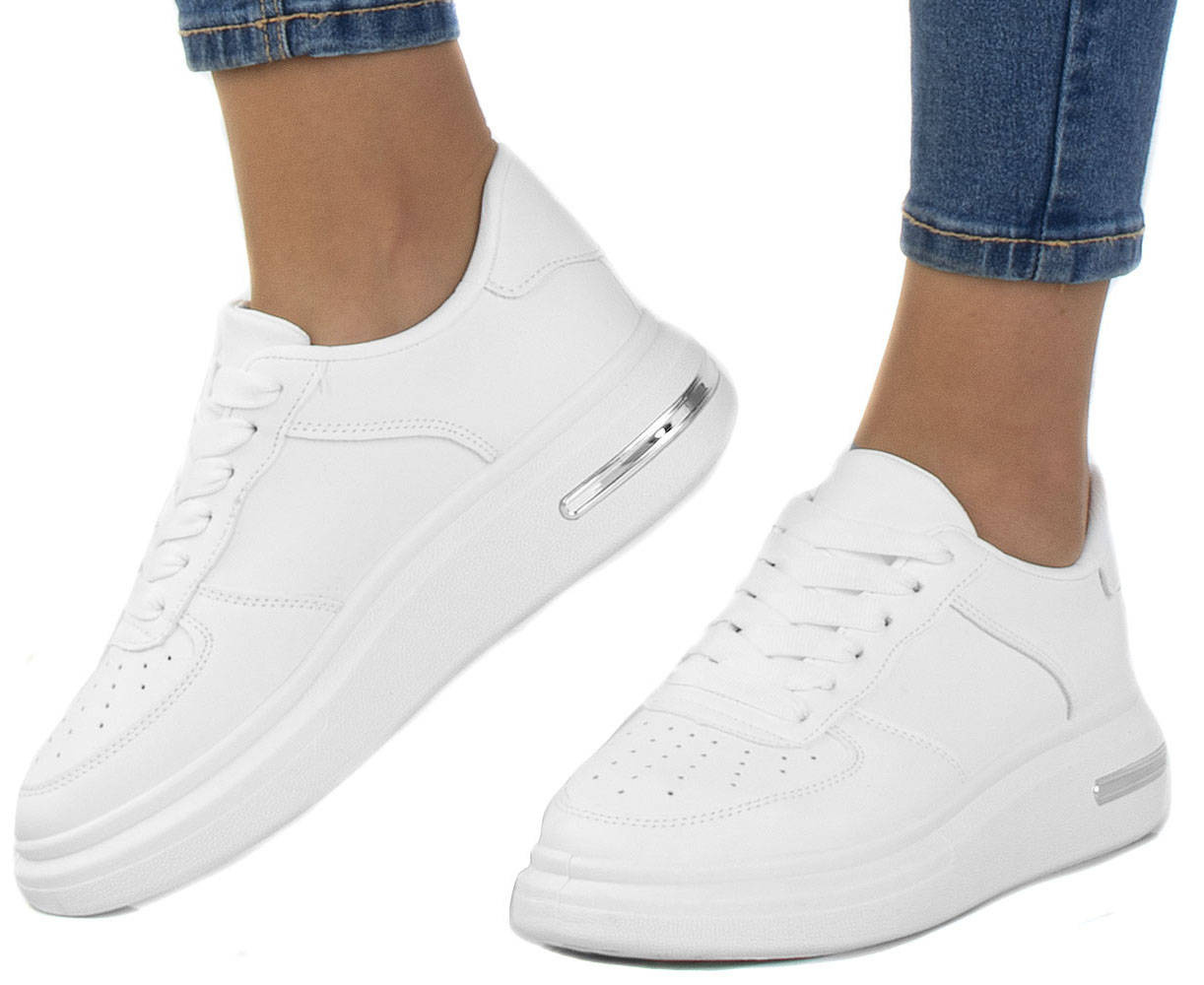 BIAŁE SPORTOWE SNEAKERSY GRUBA PODESZWA. TE KLASYCZNE SNEAKERSY MOŻNA DOPASOWAĆ DO KAŻDEJ STYLIZACJI DZIĘKI BIAŁEMU KLASYCZNEMU KOLOROWI.