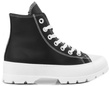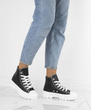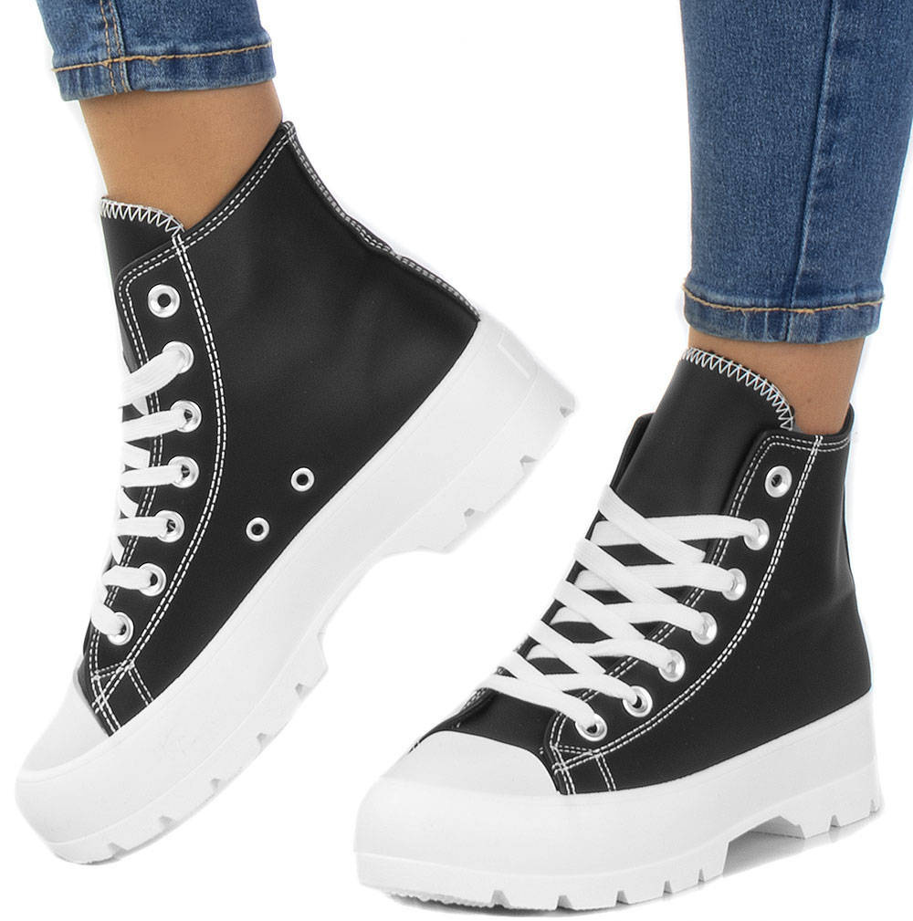 CZARNE WYSOKIE SKÓRZANE TRAMPKI NA PLATFORMIE BOW