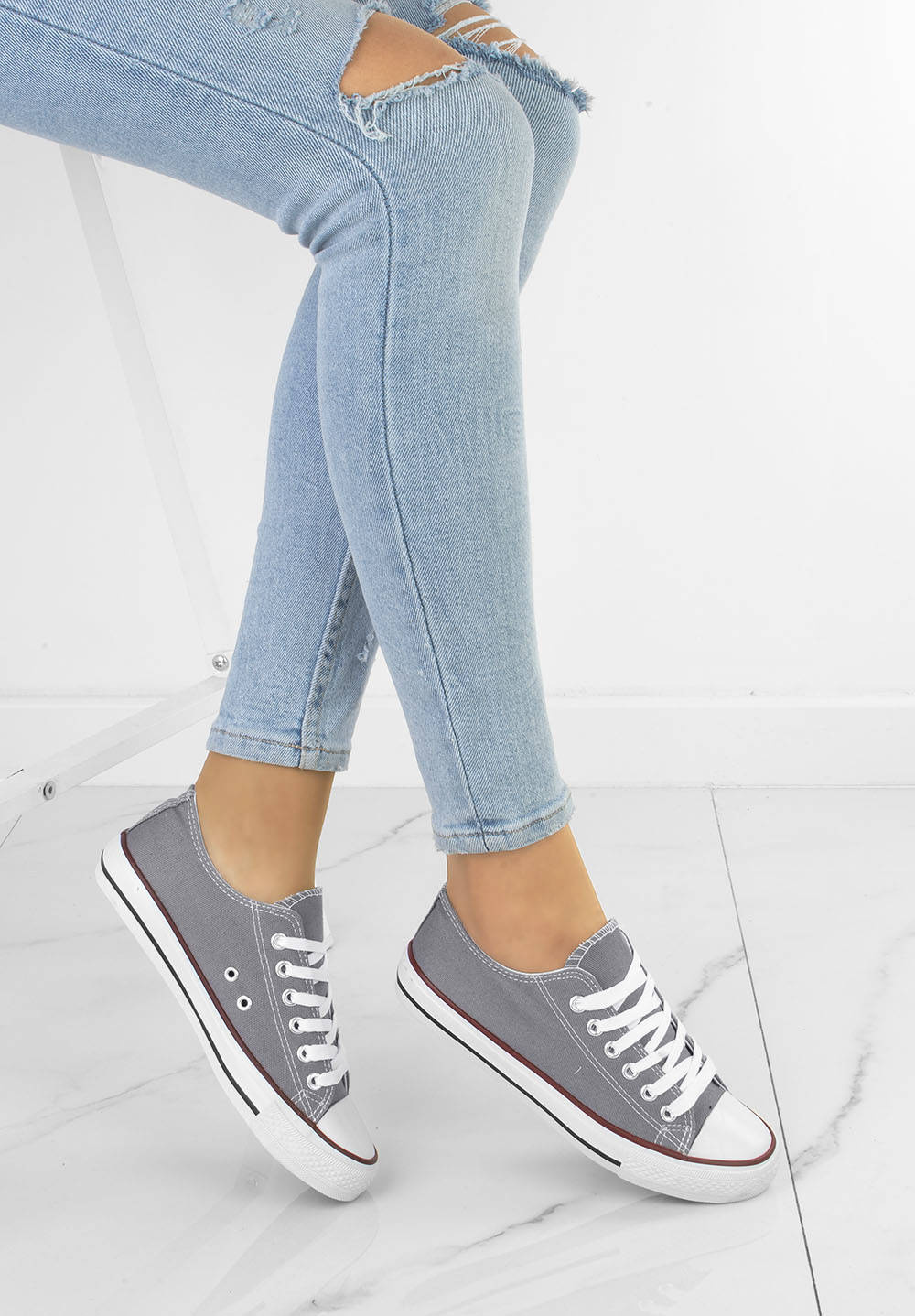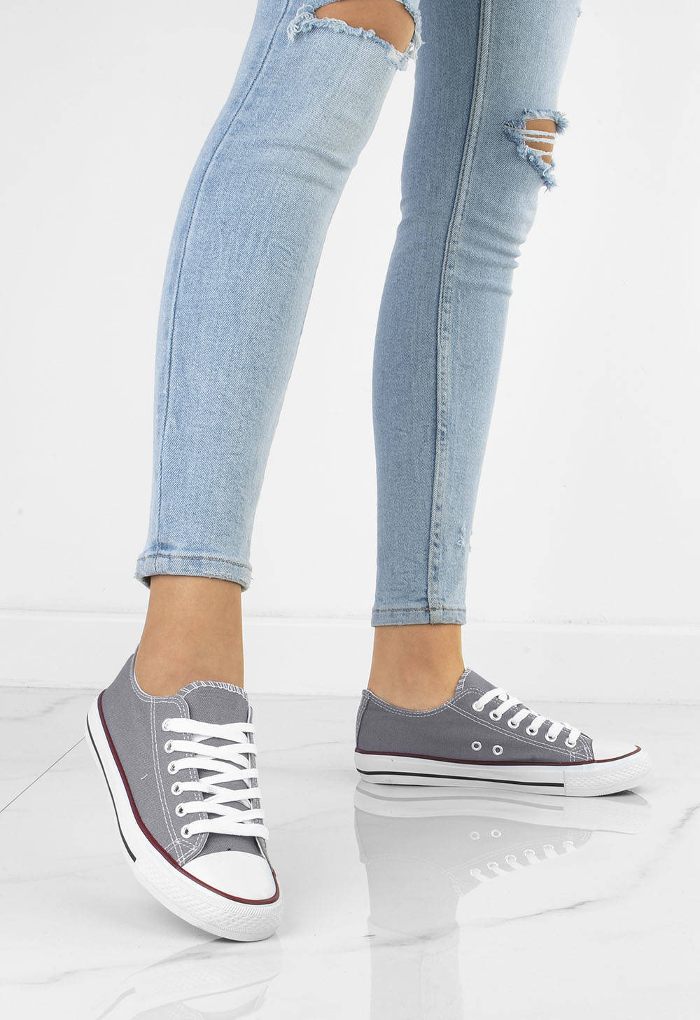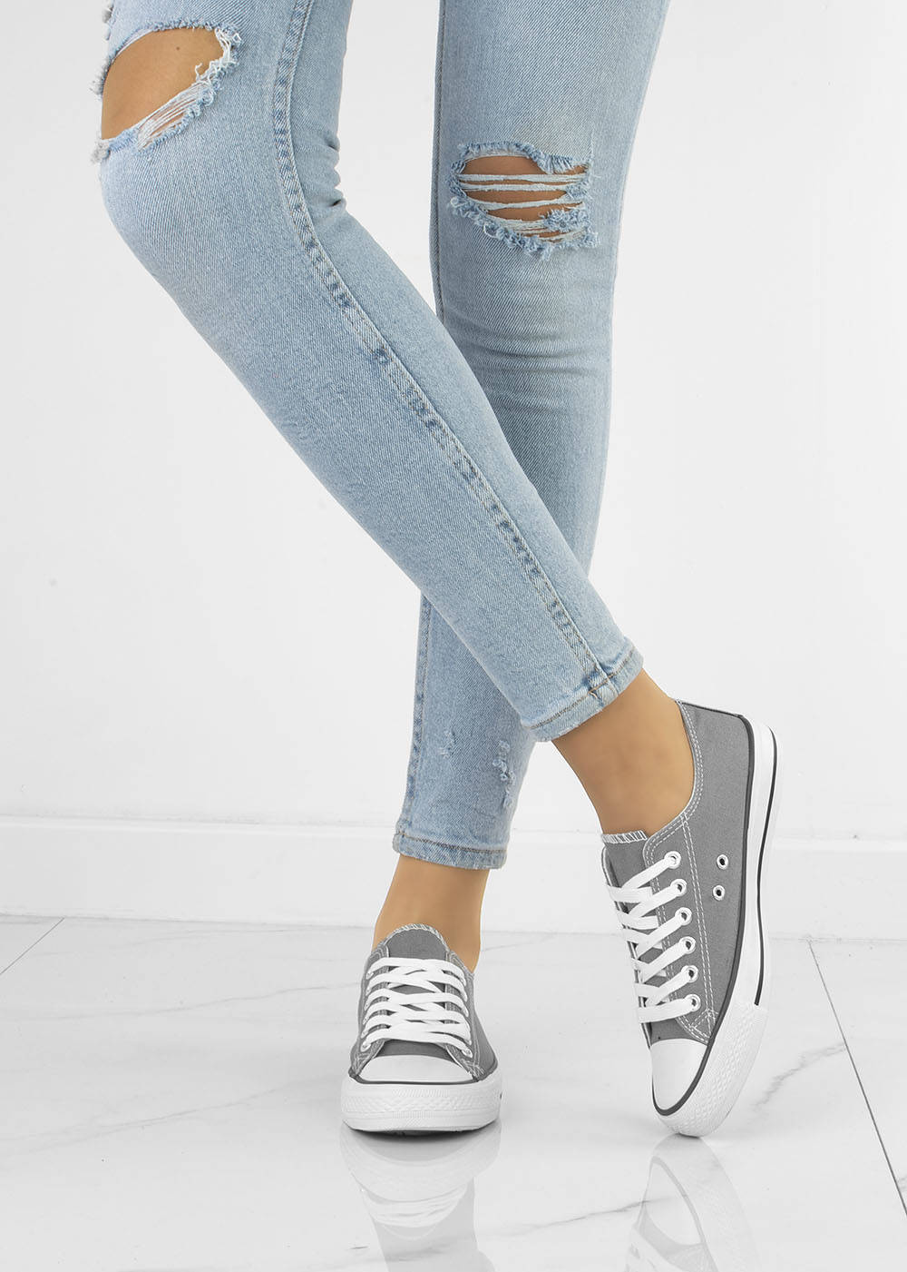 SZARE KLASYCZNE NISKIE TRAMPKI DAMSKIE