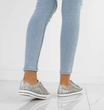 Klasyczny model trampek na gumowej podeszwie z cekinami i dżetami. Obuwie sznurowane, absolutny must have dla każdego miłośnika trampek.