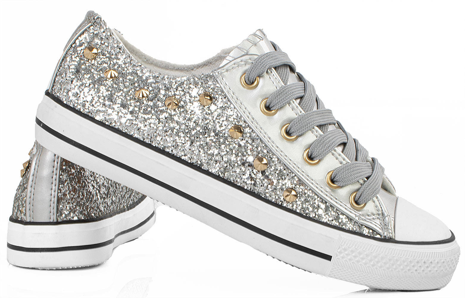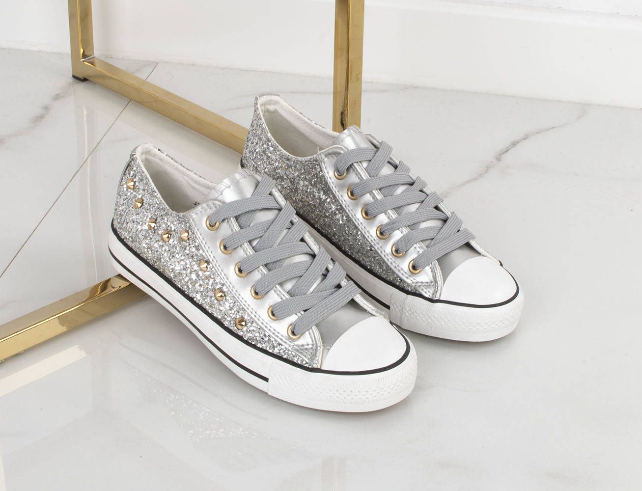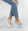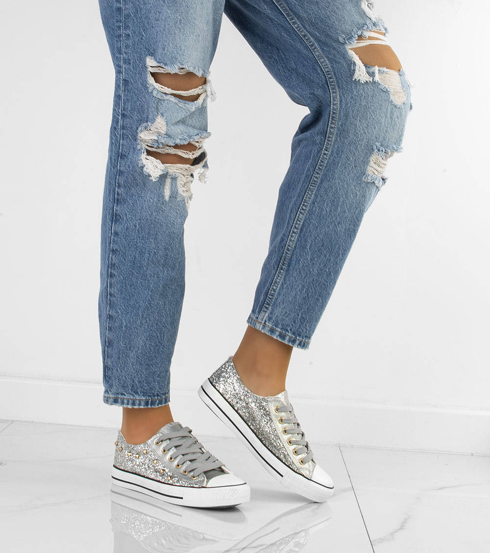 SREBRNE KLASYCZNE NISKIE TRAMPKI DAMSKIE