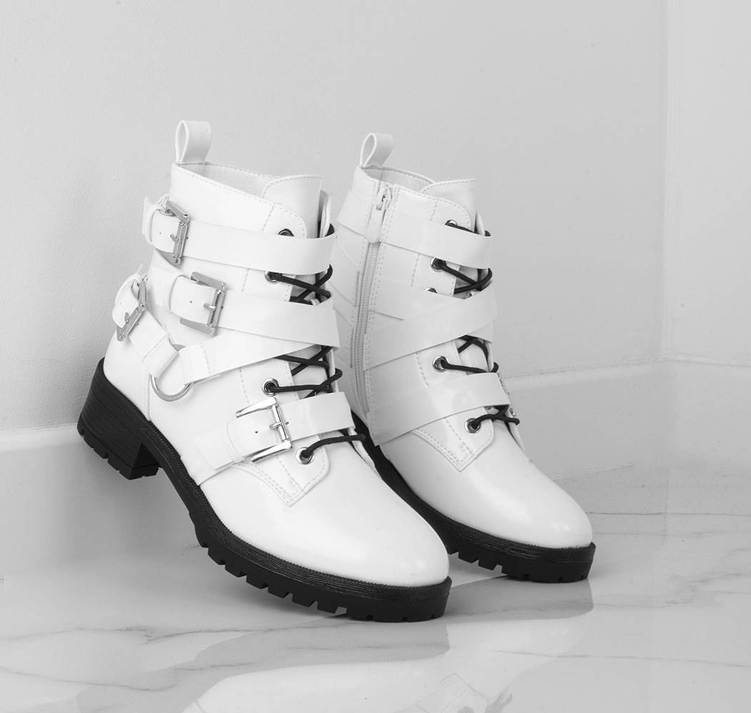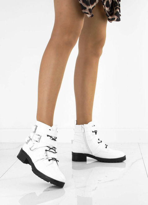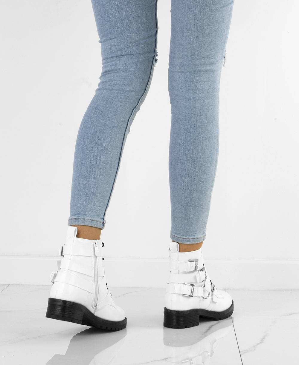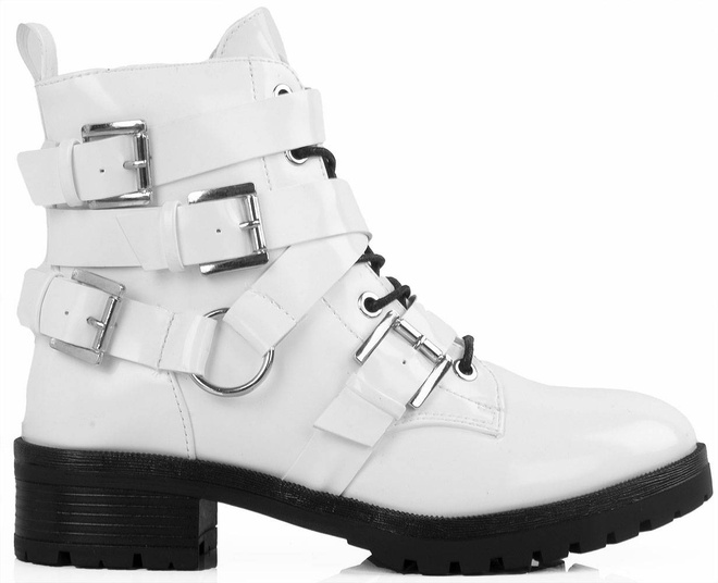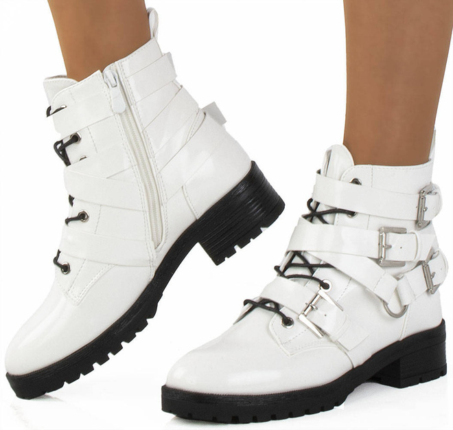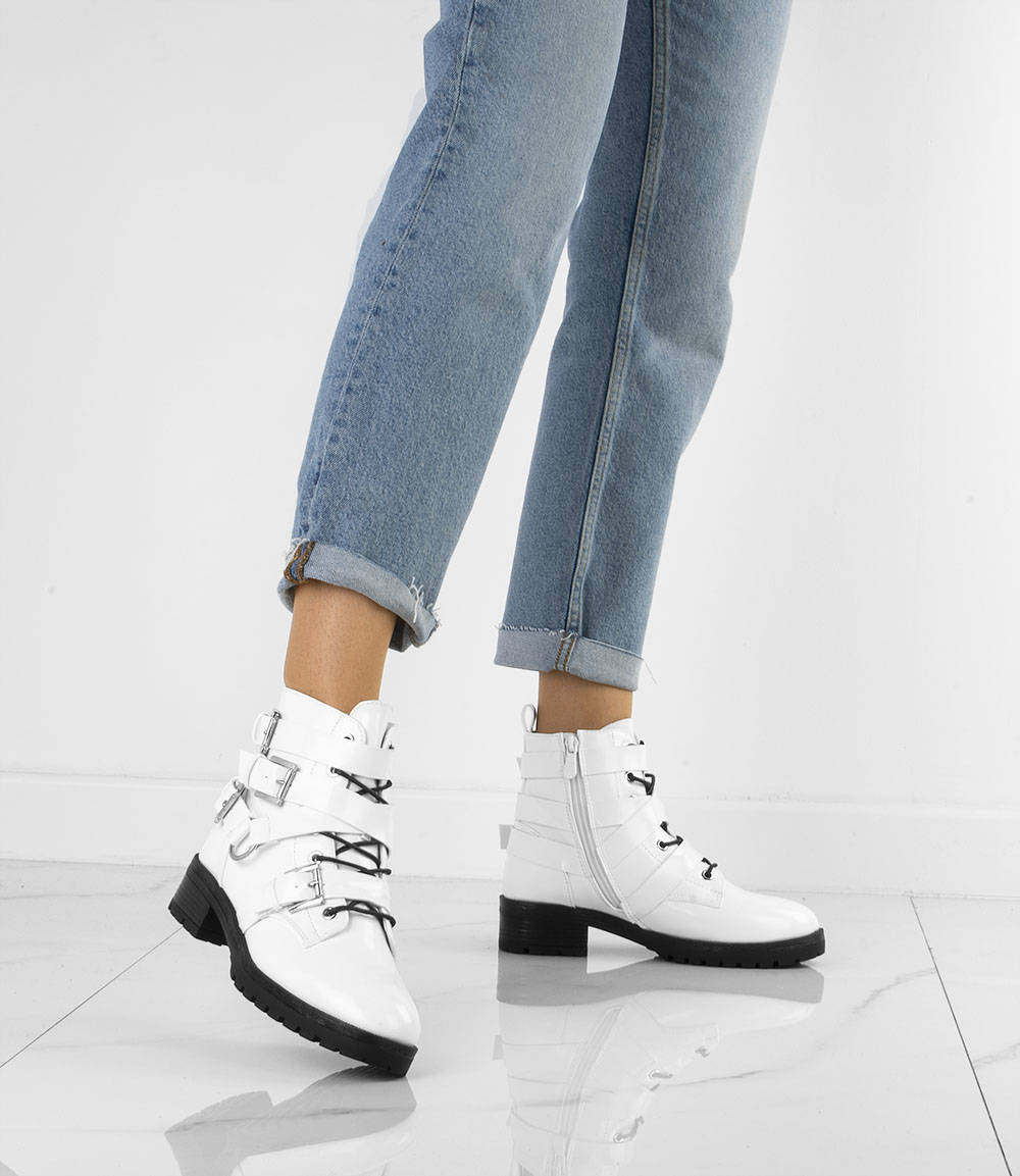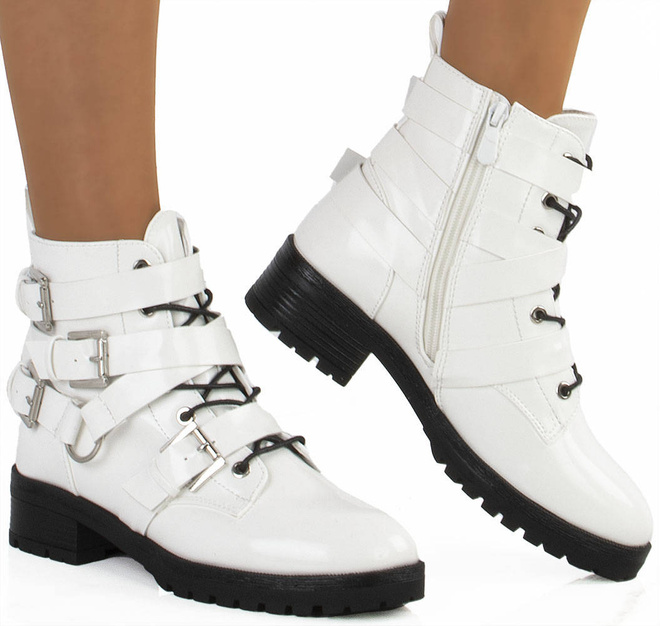 Stylowe botki damskie typu glany. Antypoślizgowa podeszwa typu traper idealna na jesień i zimę.