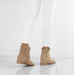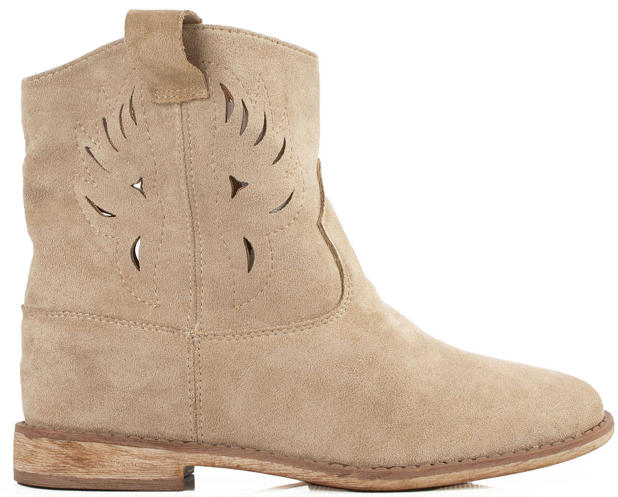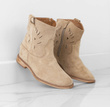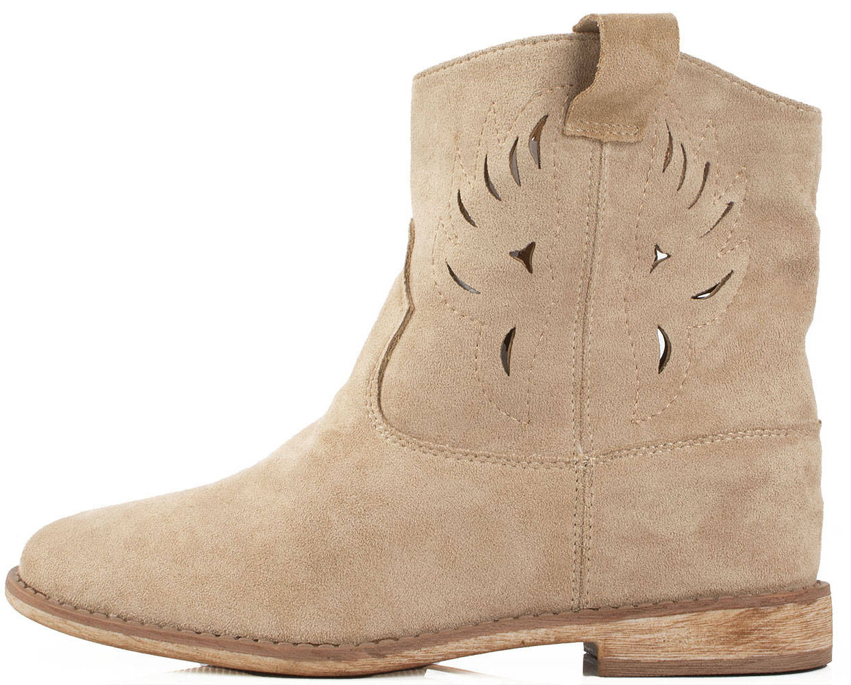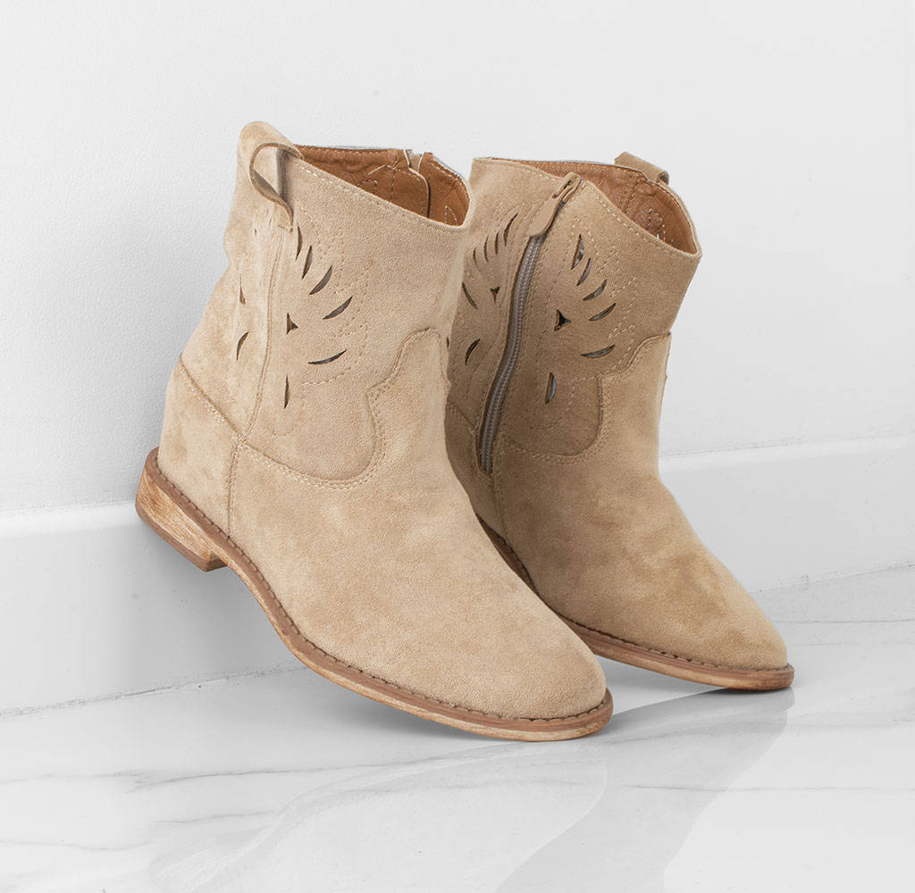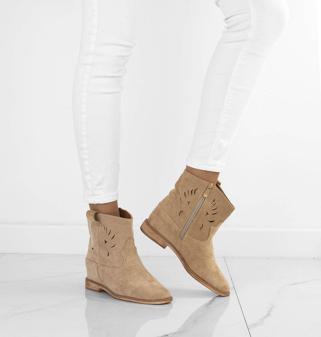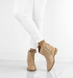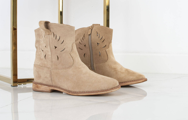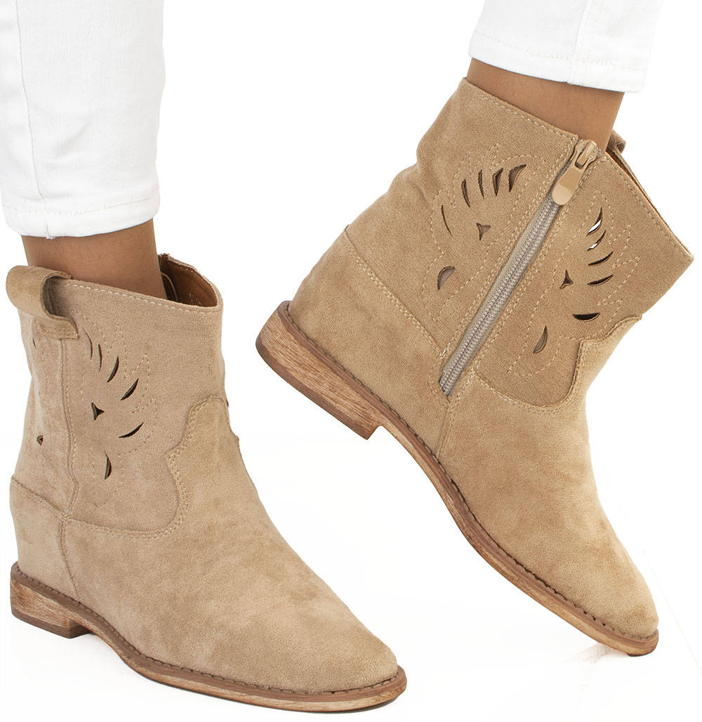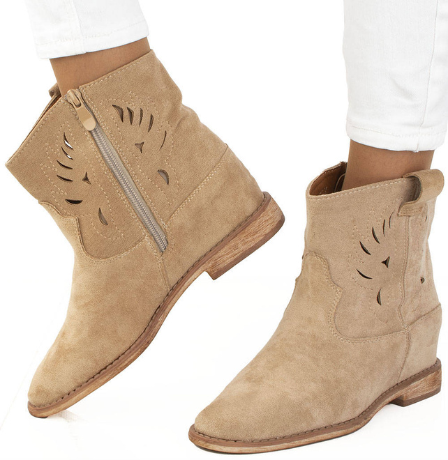 Botki damskie w kolorze khaki wykonane ze skóry zamszowej. Obuwie na płaskim obcasie, posiada ozdobne wycięcia na cholewce. Buty zapinane na zamek. Idealne na wiosenne i jesienne dni!