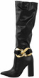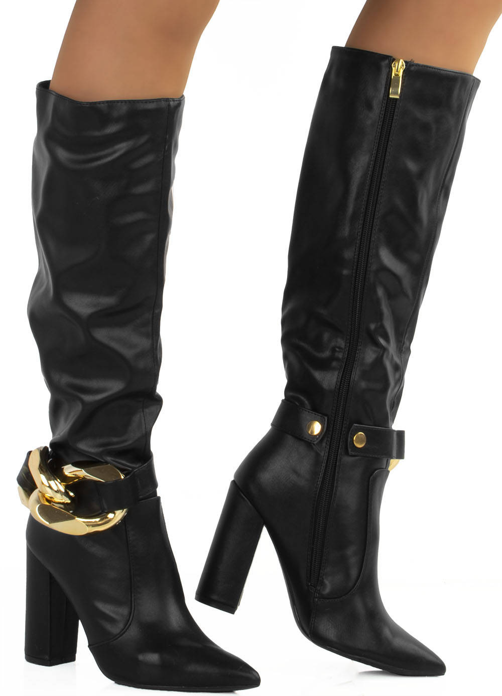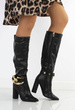 Czarne kozaki za kolano wykonane z mięciutkiej skóry ekologicznej. Lekko elastyczny materiał sprawi, że buty pięknie dopasują się do Twoich nóg. Najwygodniejszy model na słpku pasujący do wielu stylizacji. Zapinane na suwak. Z boku pasek z łańcuchem, który można zapiąć lub odpiąć