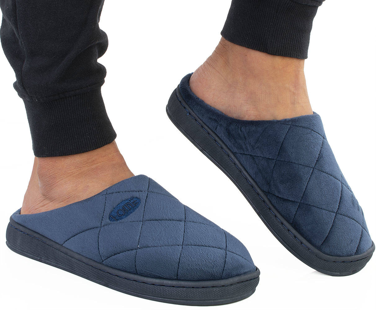 • Męskie, wygodne klapki na płaskiej podeszwie. Ocieplane futerkiem. Idealne jako kapcie po domu w zimne wieczory!