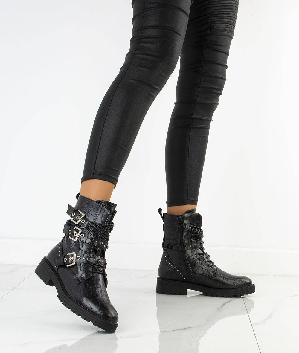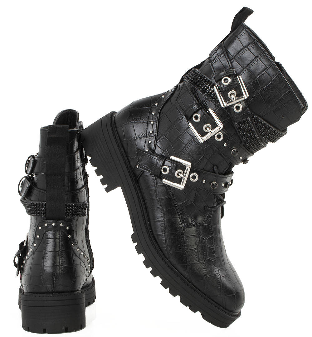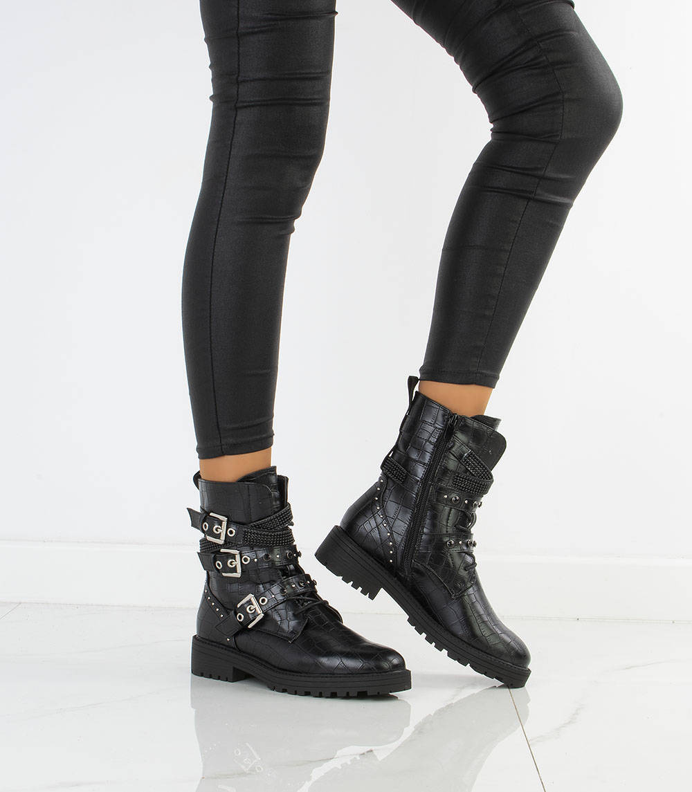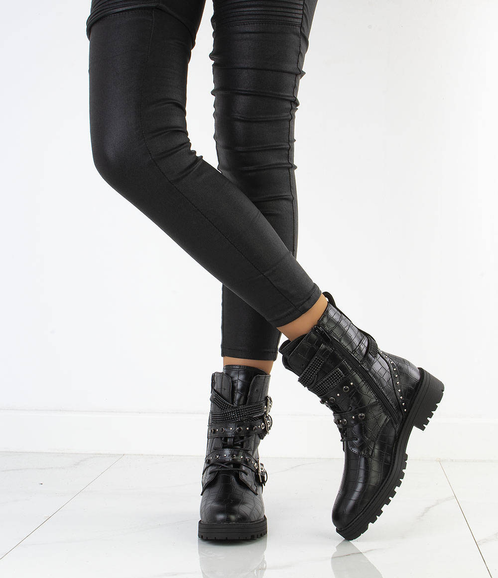 • Piękne workery damskie wykonane ze skóry ekologicznej z wężowym motywem. W środku delikatne ocieplenie. Model zapinany na suwak, dodatkowo ozdobne sprzączki oraz dżety i cyrkonie.