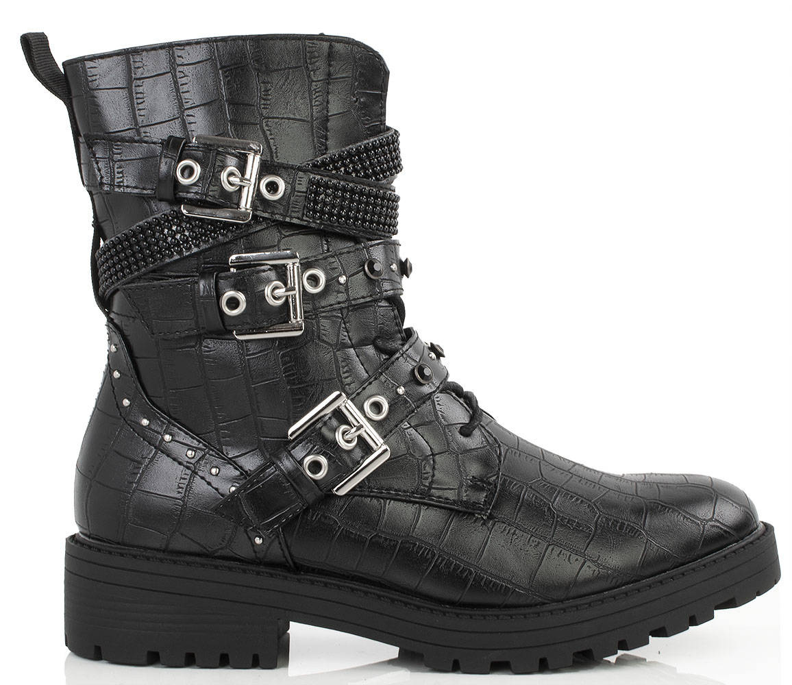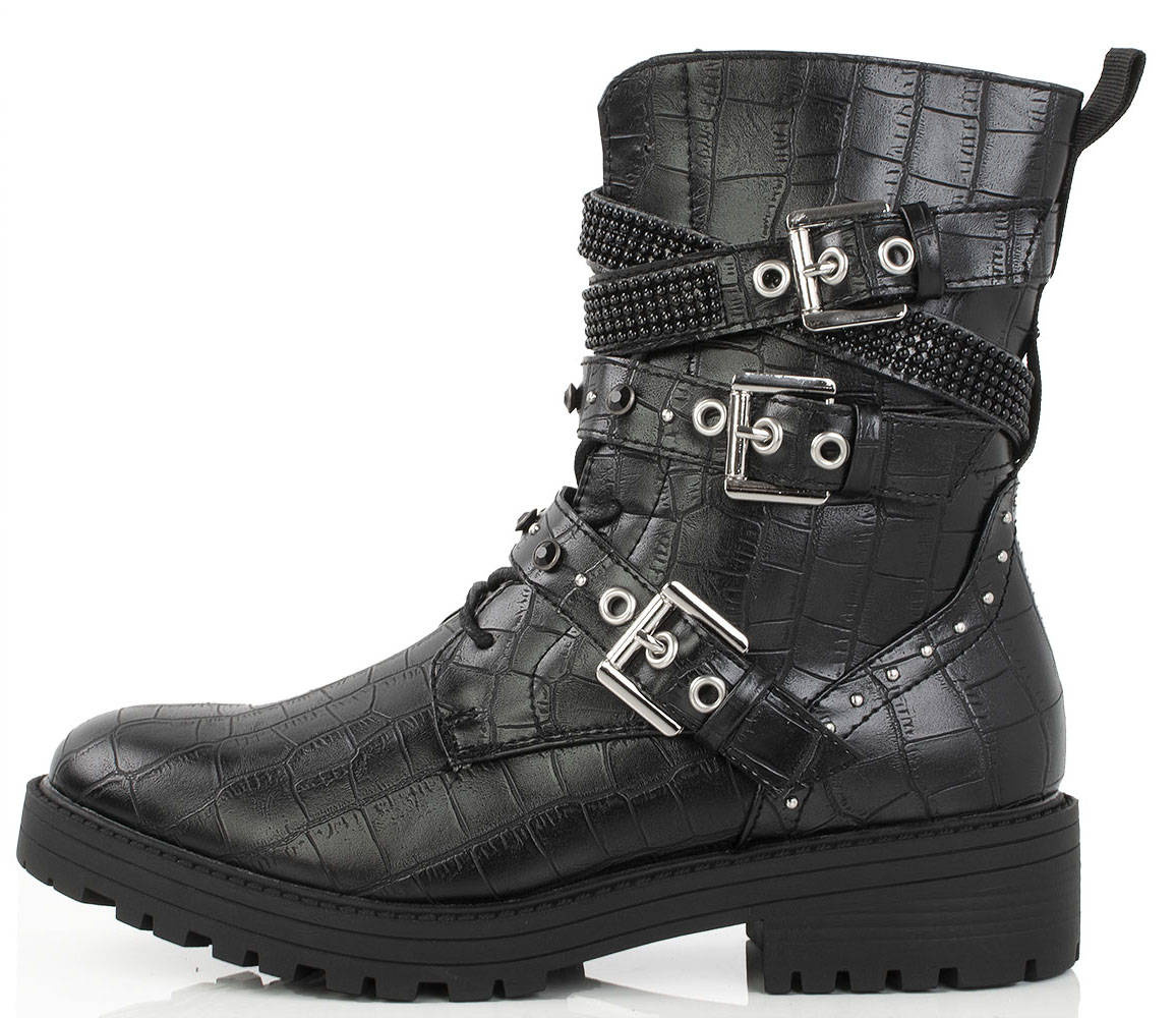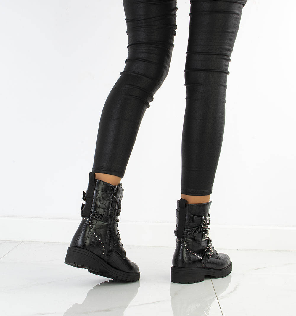 • Piękne workery damskie wykonane ze skóry ekologicznej z wężowym motywem. W środku delikatne ocieplenie. Model zapinany na suwak, dodatkowo ozdobne sprzączki oraz dżety i cyrkonie.