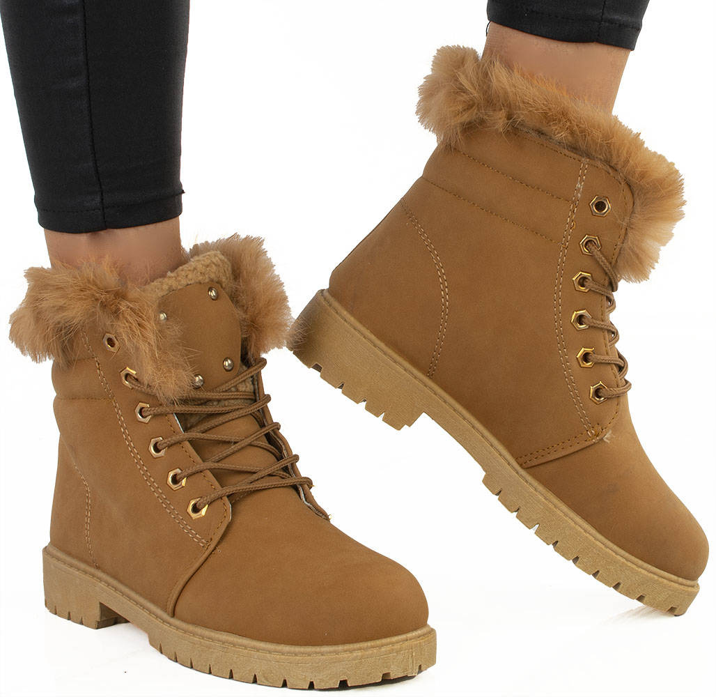Ciepłe botki wykonane z ekoskóry. Wewnątrz ocieplane miękkim futerkiem (również na wkładce). Model sznurowany, posiada podeszwę typu traper. Idealne na zimę!