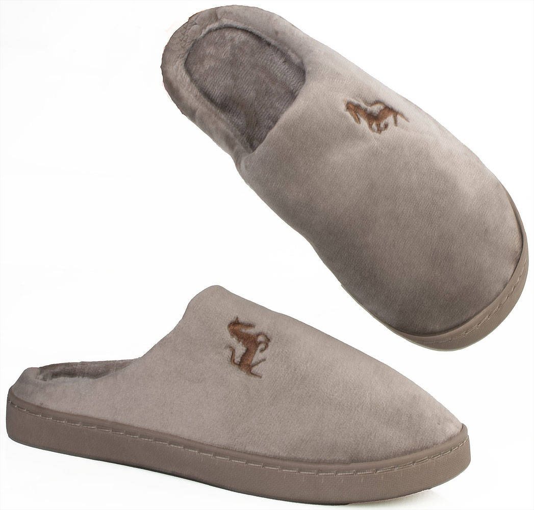 • Męskie, wygodne klapki na płaskiej podeszwie. Ocieplane futerkiem. Idealne jako kapcie po domu w zimne wieczory!