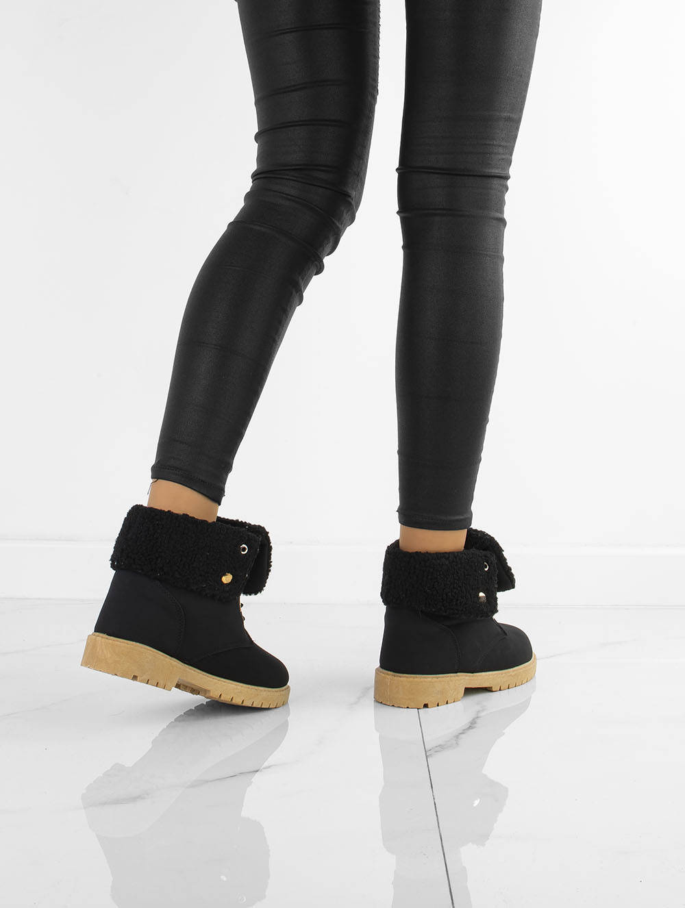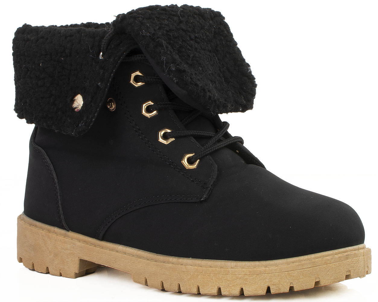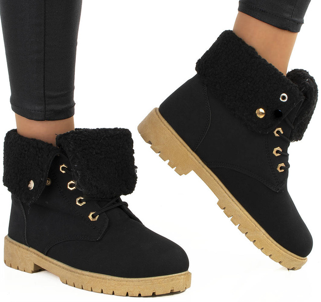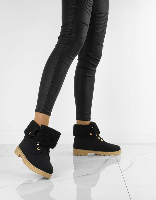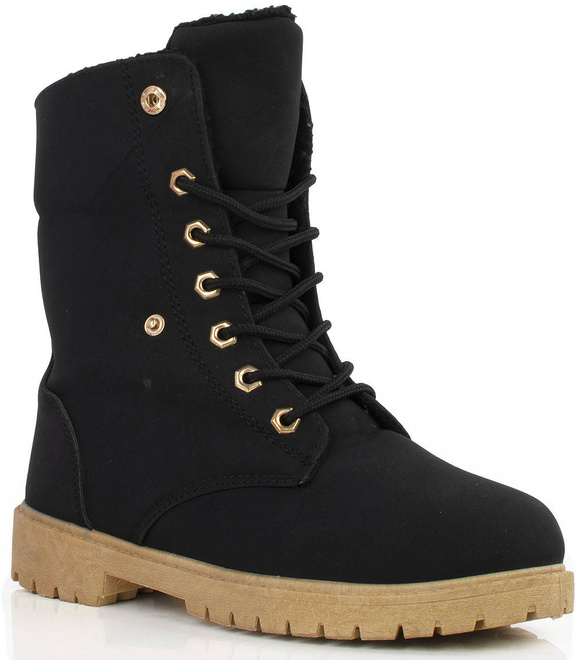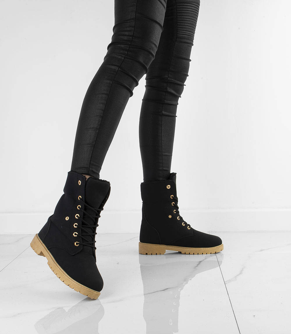 Ciepłe botki wykonane z ekoskóry. Wewnątrz ocieplane miękkim futerkiem (również na wkładce). Model sznurowany, posiada podeszwę typu traper. Idealne na zimę!