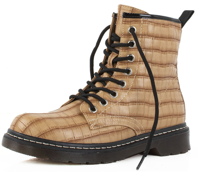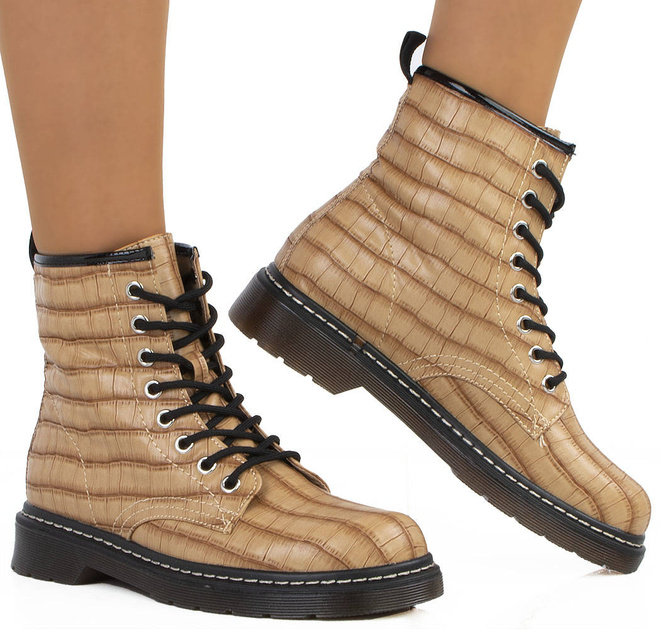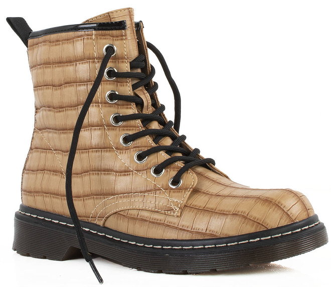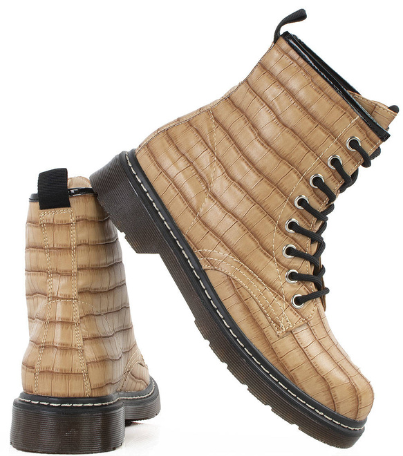 • Stylowe botki damskie typu glany. Antypoślizgowa podeszwa typu traper idealna na jesień i zimę.