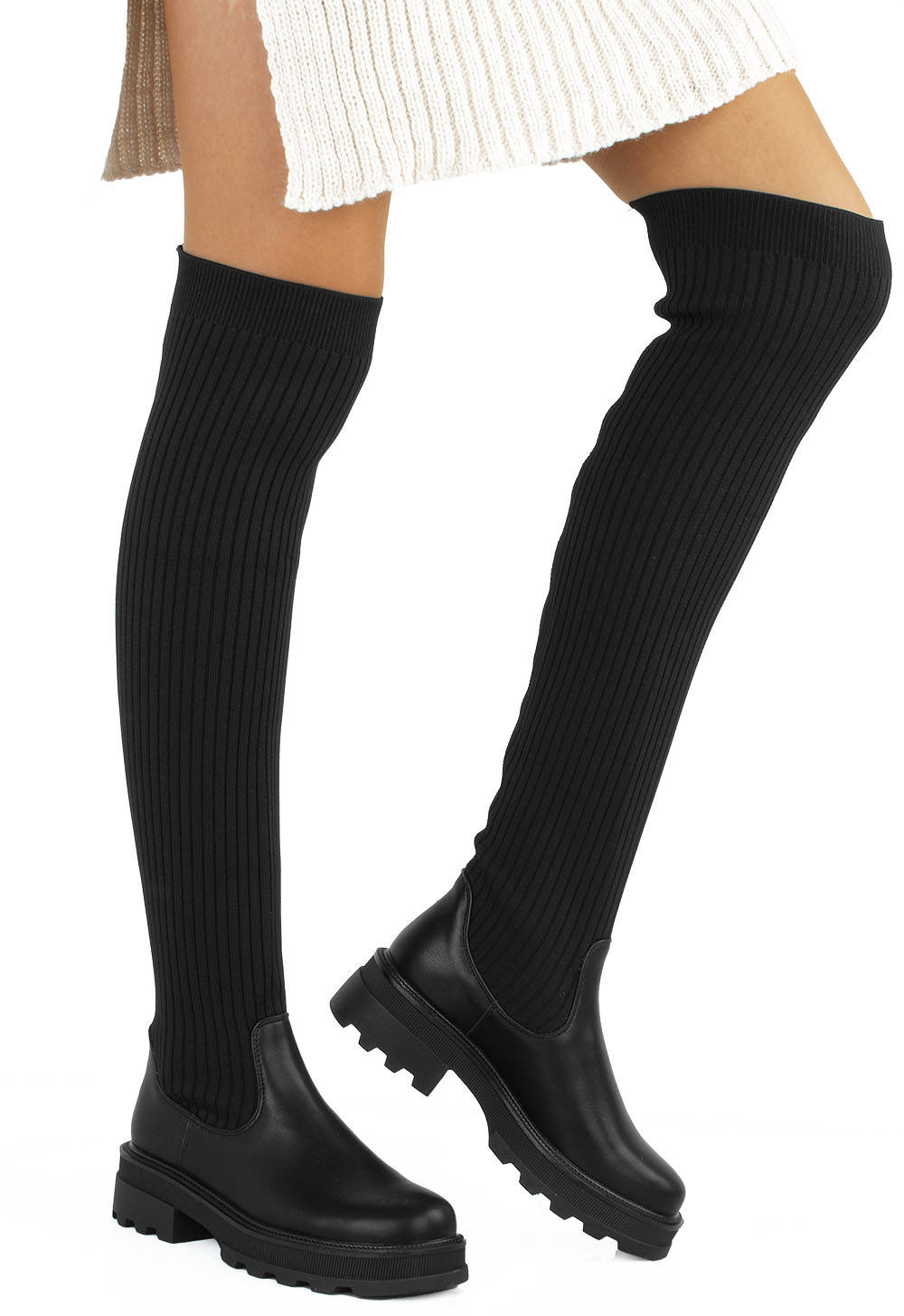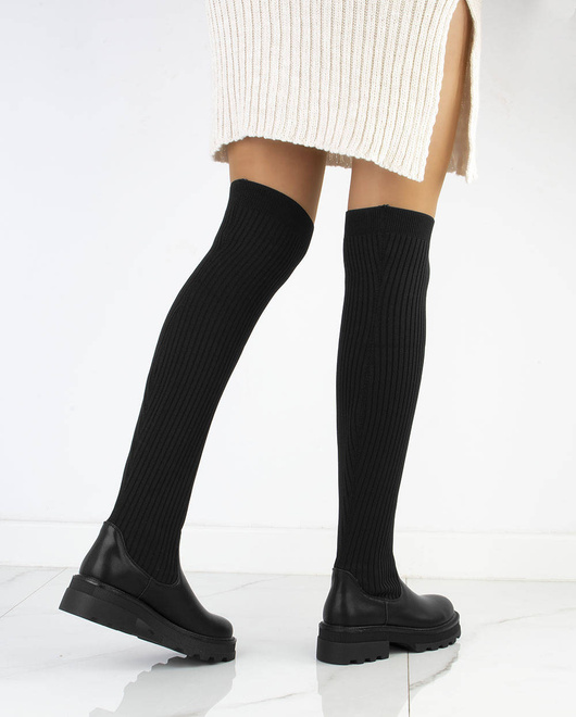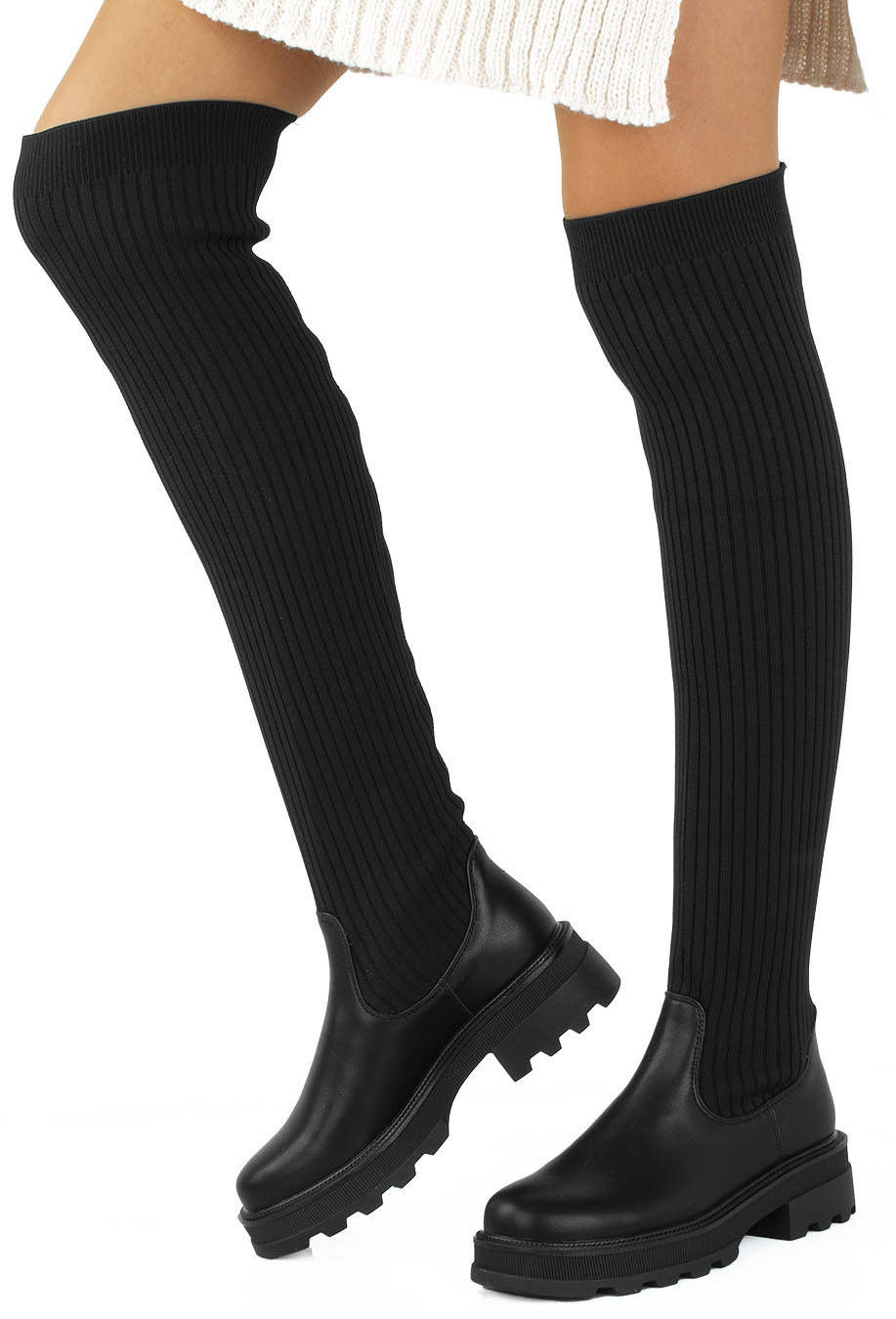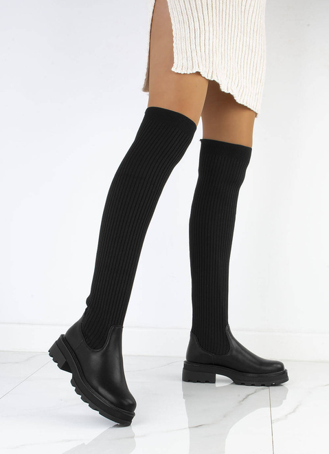 CZARNE KOZAKI ZA KOLANO Z ELASTYCZNĄ CHOLEWKĄ