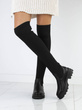 Czarne kozaki za kolano wykonane z mięciutkiej skóry ekologicznej. Lekko elastyczny materiał sprawi, że buty pięknie dopasują się do Twoich nóg.  Wewnątrz ocieplenie w postaci mięciutkiego polaru. Najwygodniejszy model na platformie pasujący do wielu stylizacji. Zapinane na suwak.