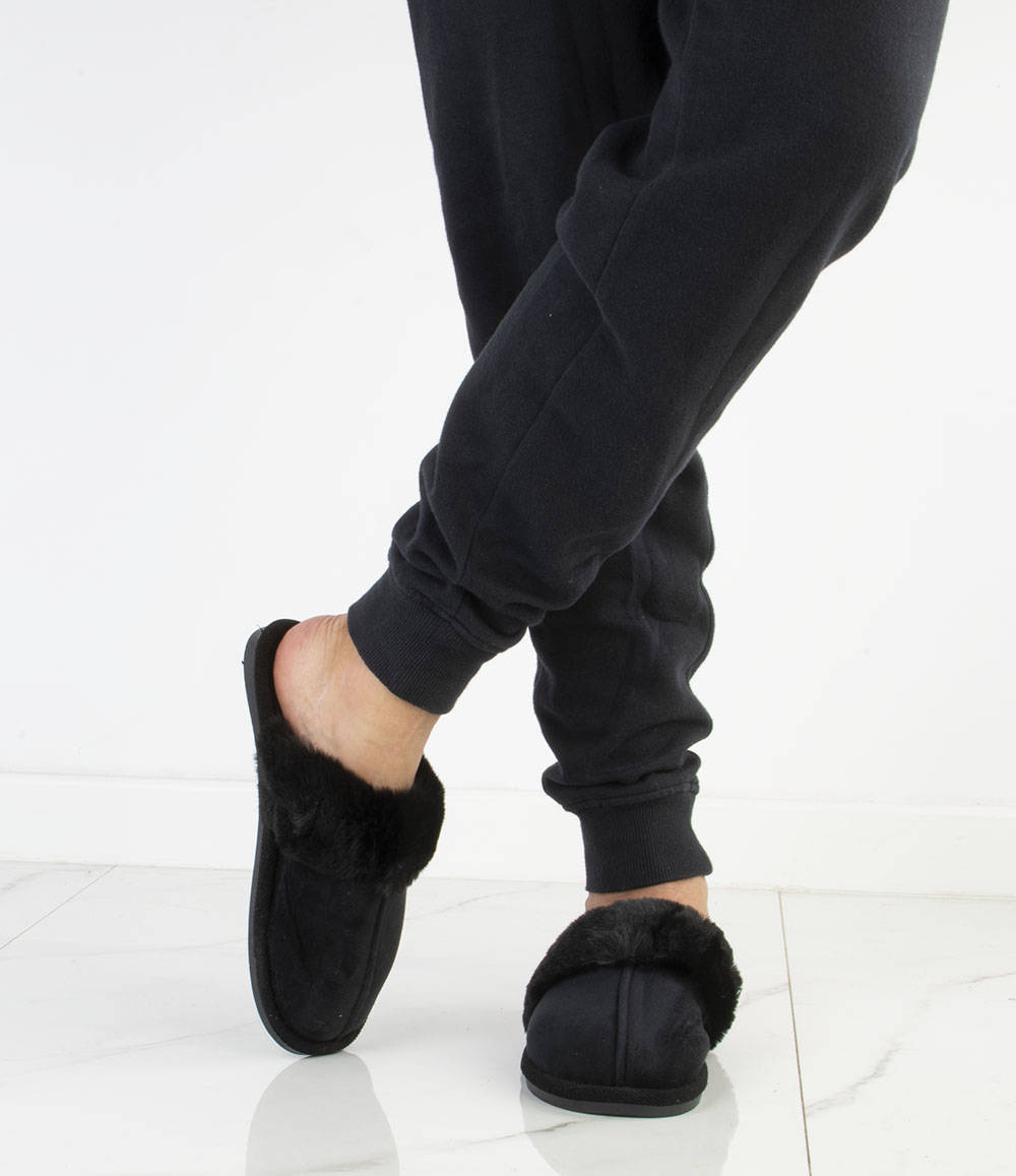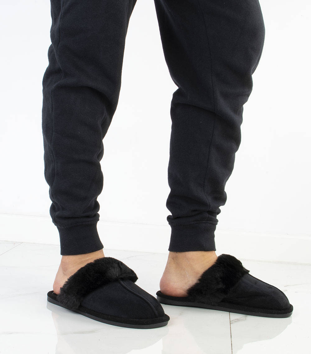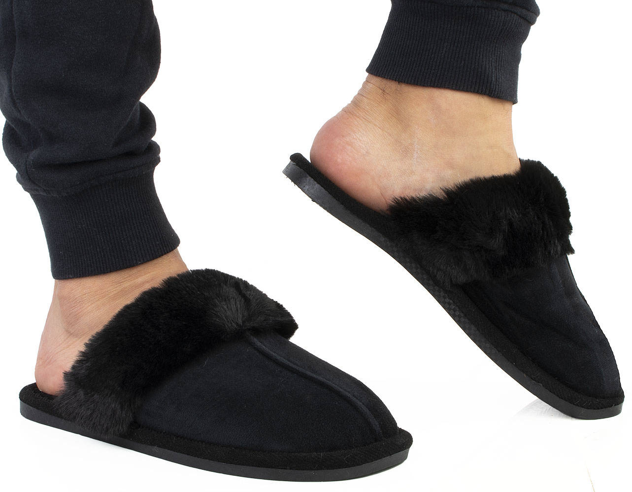 • Męskie, wygodne klapki na płaskiej podeszwie. Ocieplane futerkiem. Idealne jako kapcie po domu w zimne wieczory!