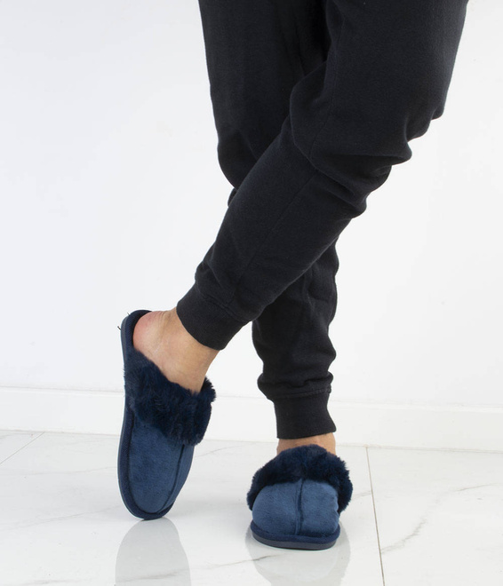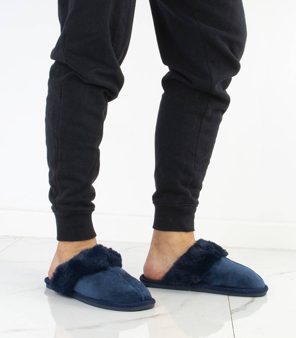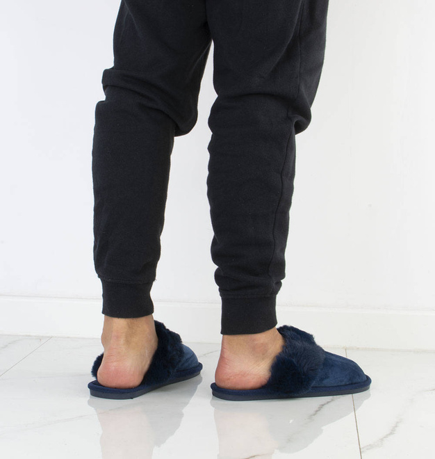 Męskie, wygodne klapki na płaskiej podeszwie. Ocieplane futerkiem. Idealne jako kapcie po domu w zimne wieczory!