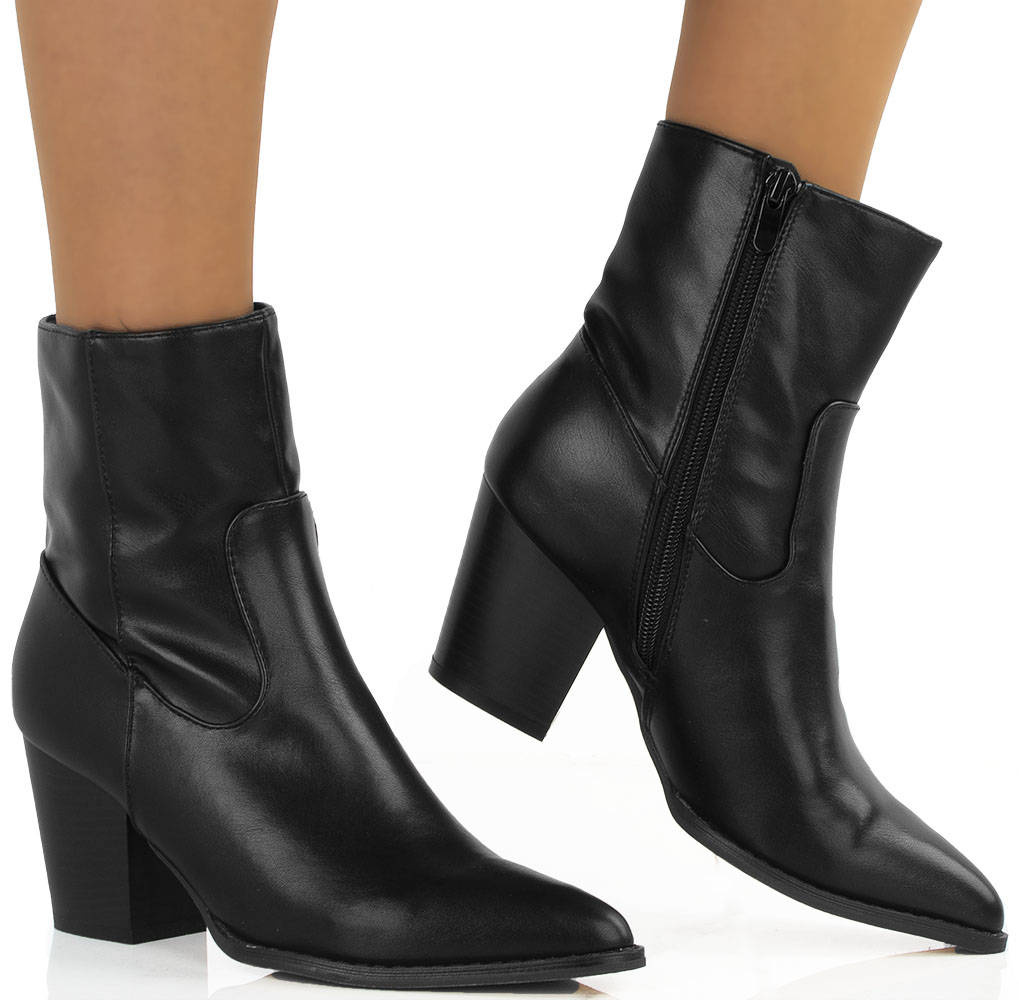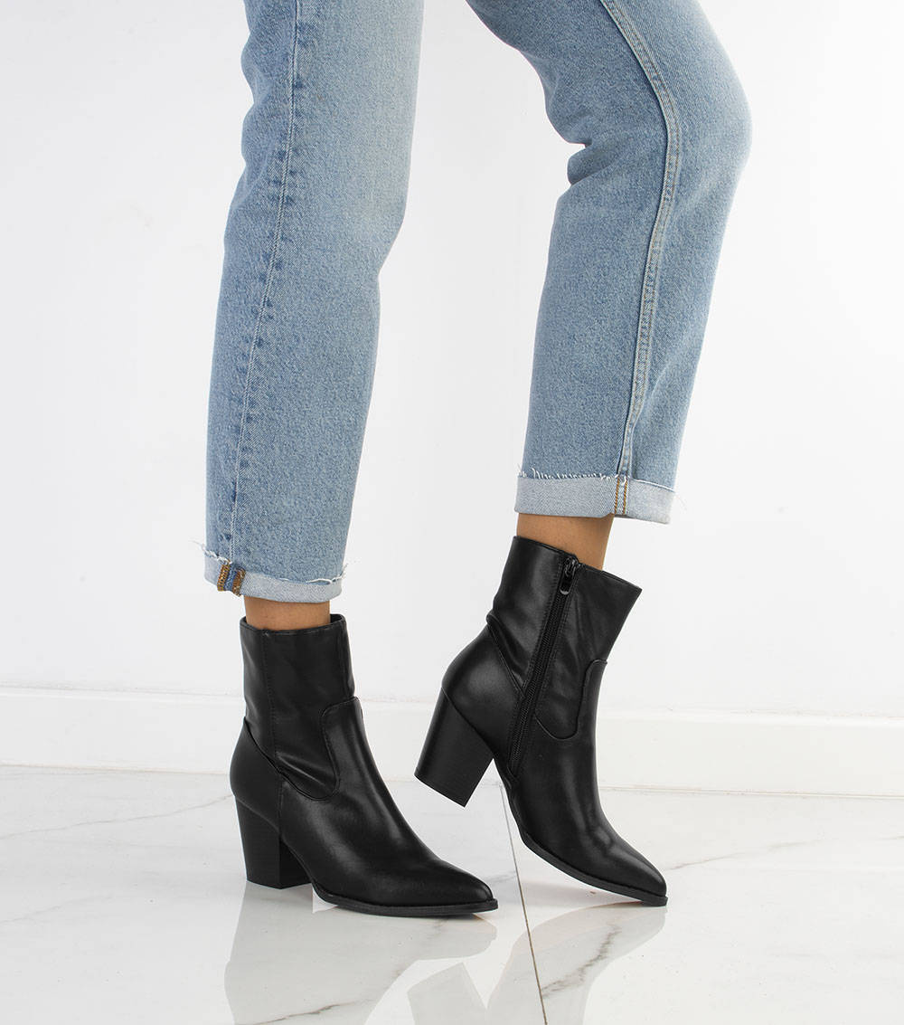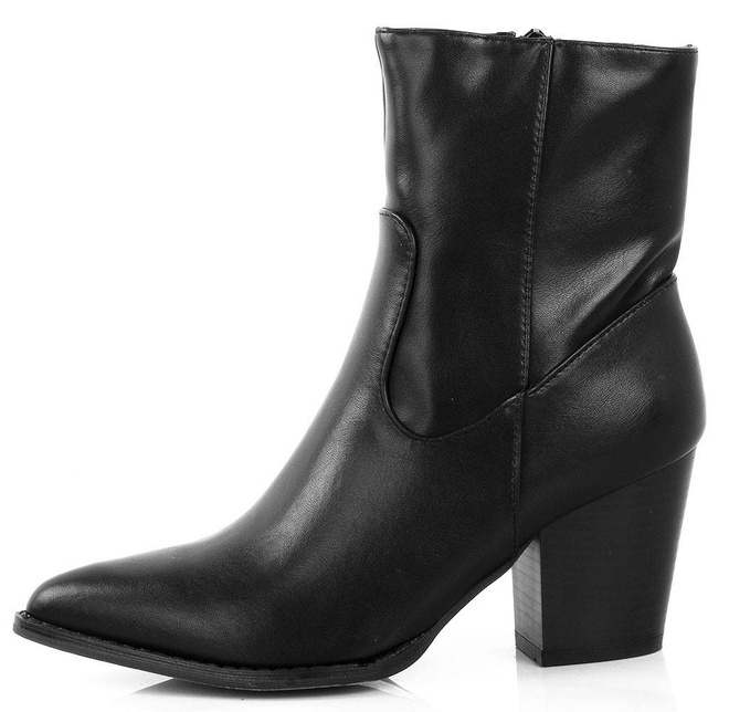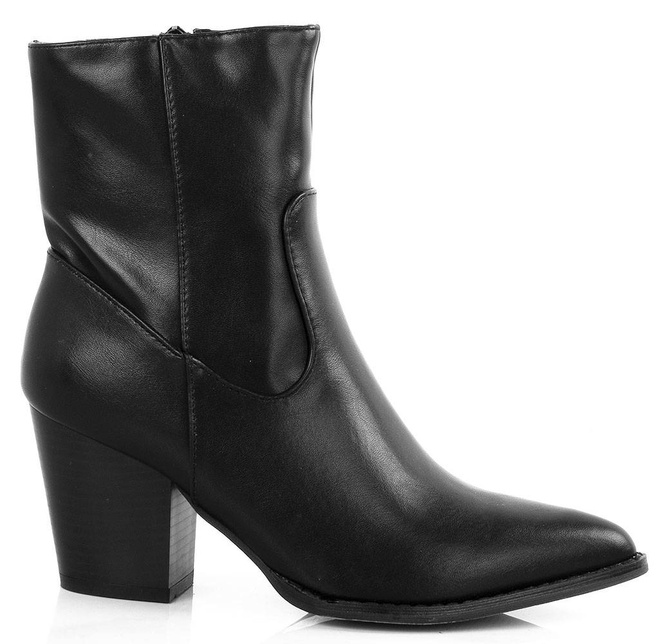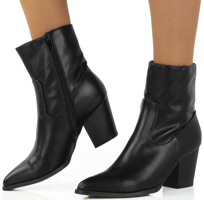 CZARNE BOTKI KOWBOJKI NA SŁUPKU W SZPIC RIVET. TE KOWBOJKI SĄ IDEALNE DO KAŻDEJ STYLIZACJI, ZARÓWNO ELEGANCKIEJ JAK I CODZIENNEJ.