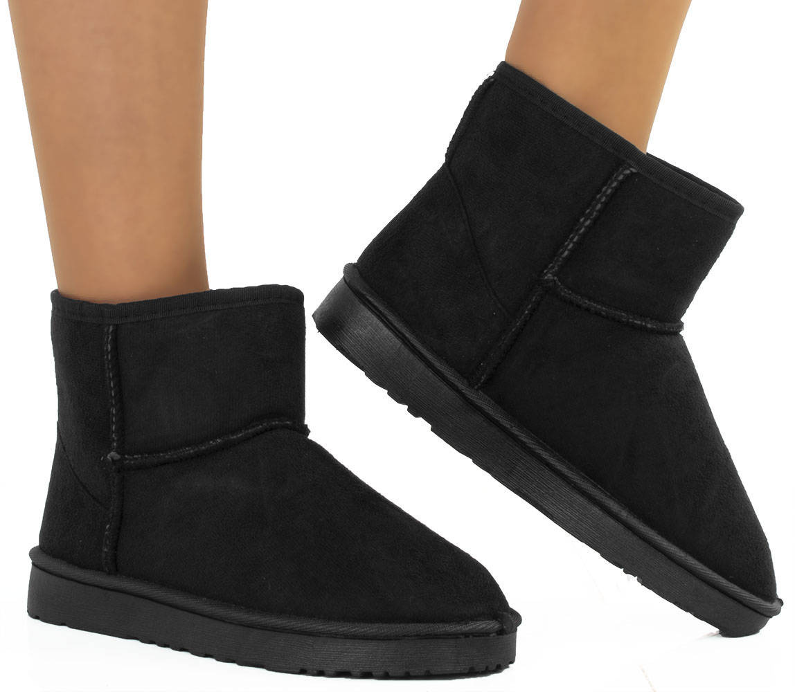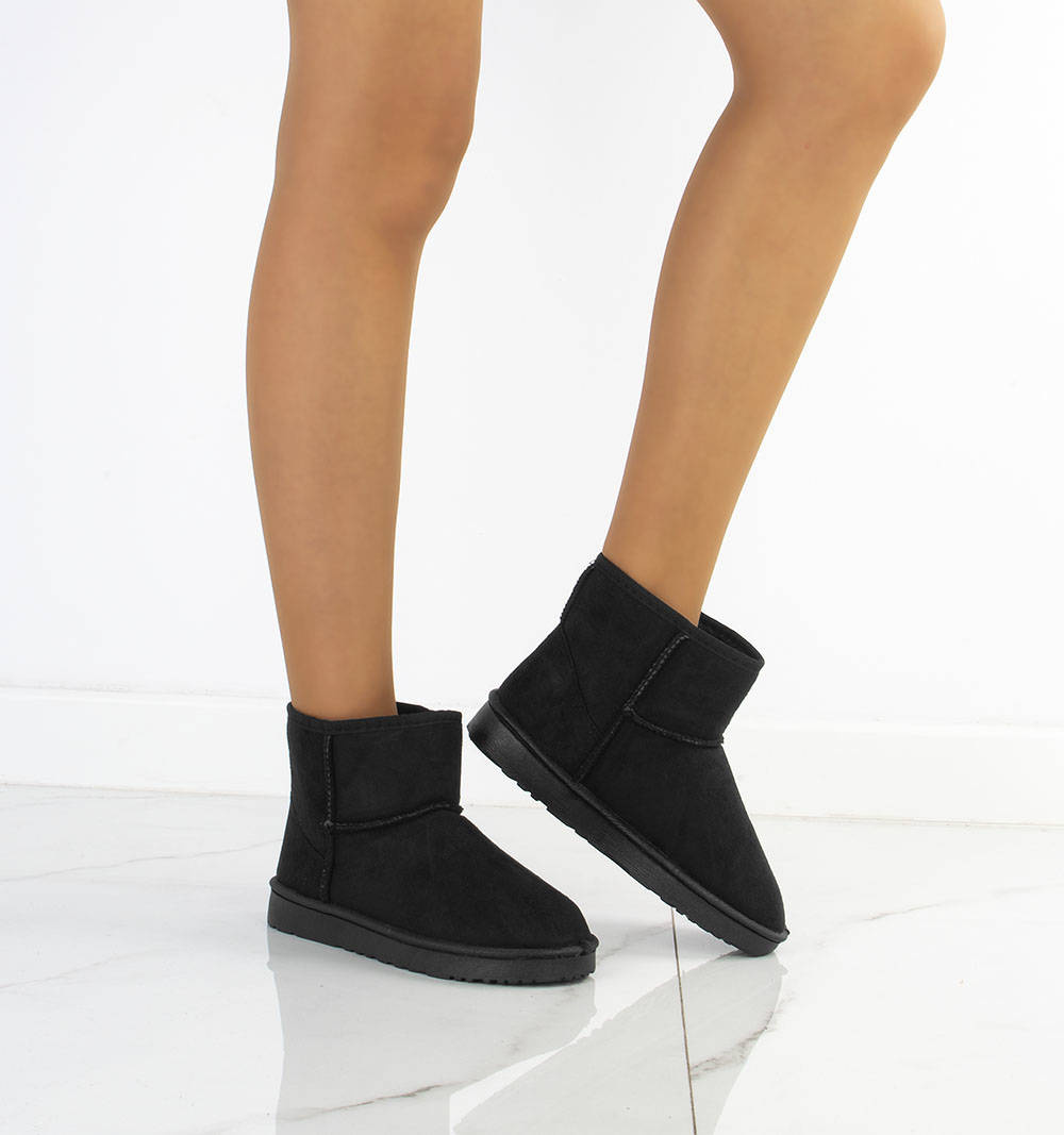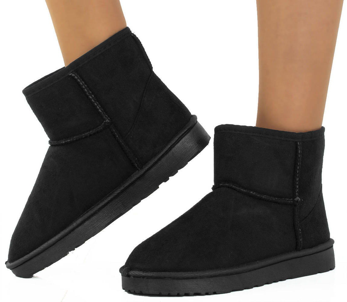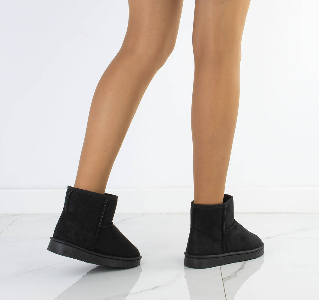 Czarne klasyczne śniegowce na płaskiej podeszwie, wykonane z materiału zamszowego. W środku ocieplone futerkiem, ciepłe oraz wygodne!
