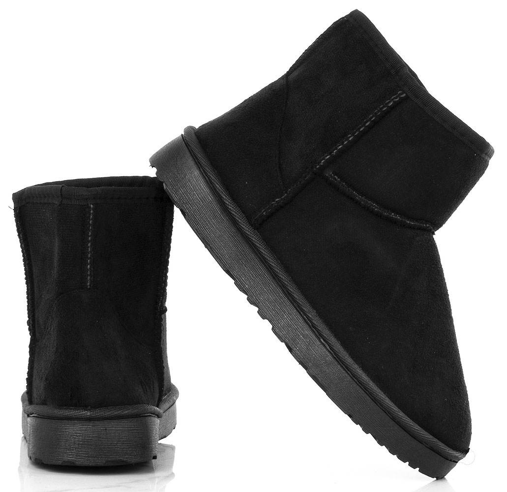 • Czarne klasyczne śniegowce na płaskiej podeszwie, wykonane z materiału zamszowego. W środku ocieplone futerkiem, ciepłe oraz wygodne!