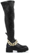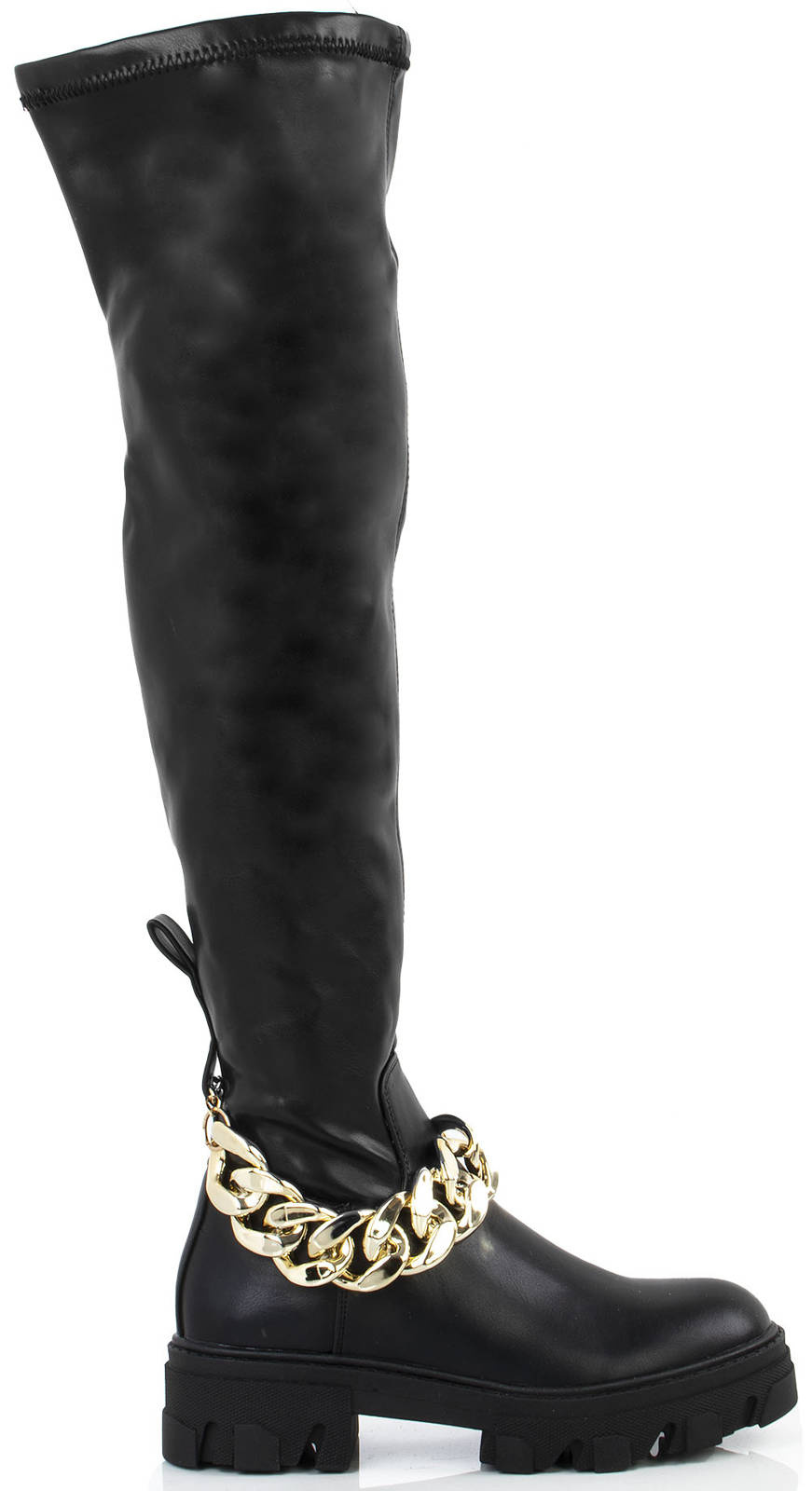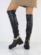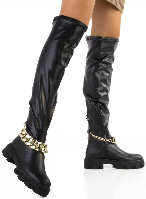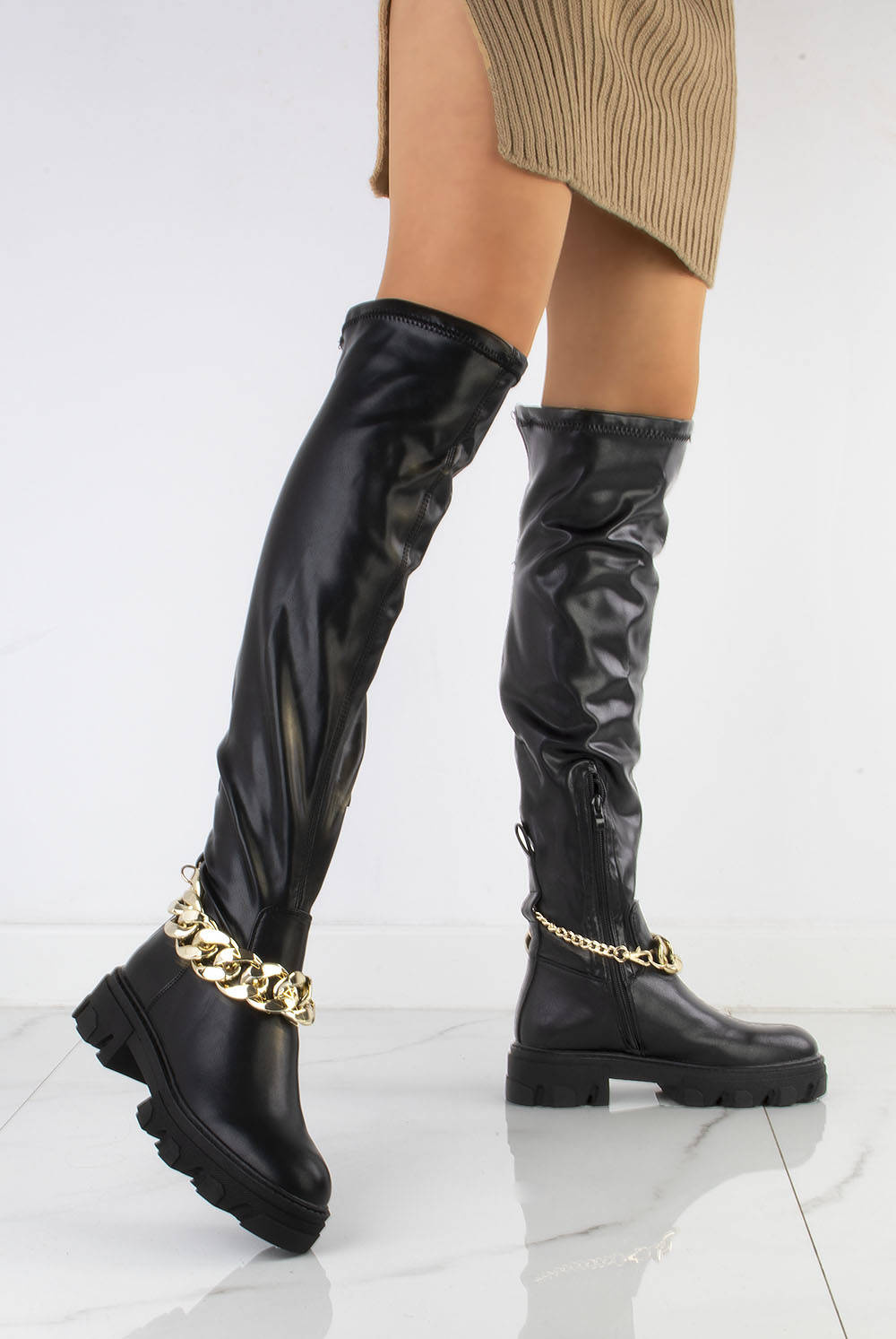 Czarne kozaki za kolano wykonane z mięciutkiej skóry ekologicznej. Lekko elastyczny materiał sprawi, że buty pięknie dopasują się do Twoich nóg. Wewnątrz ocieplenie w postaci mięciutkiego polaru. Najwygodniejszy model na platformie pasujący do wielu stylizacji. Zapinane na suwak.