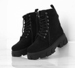 • Modne, wysokie trapery damskie wykonane z zamszu ekologicznego. Zapięcie na suwak, dodatkowo wiązane sznurówki. Botki posiadają grubą podeszwę typu platforma.
