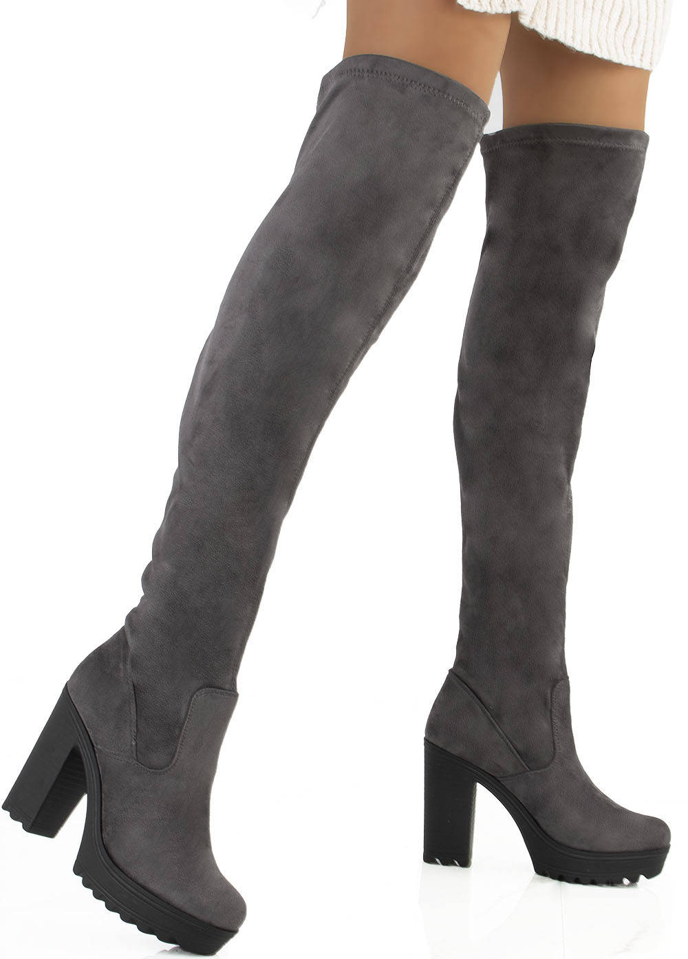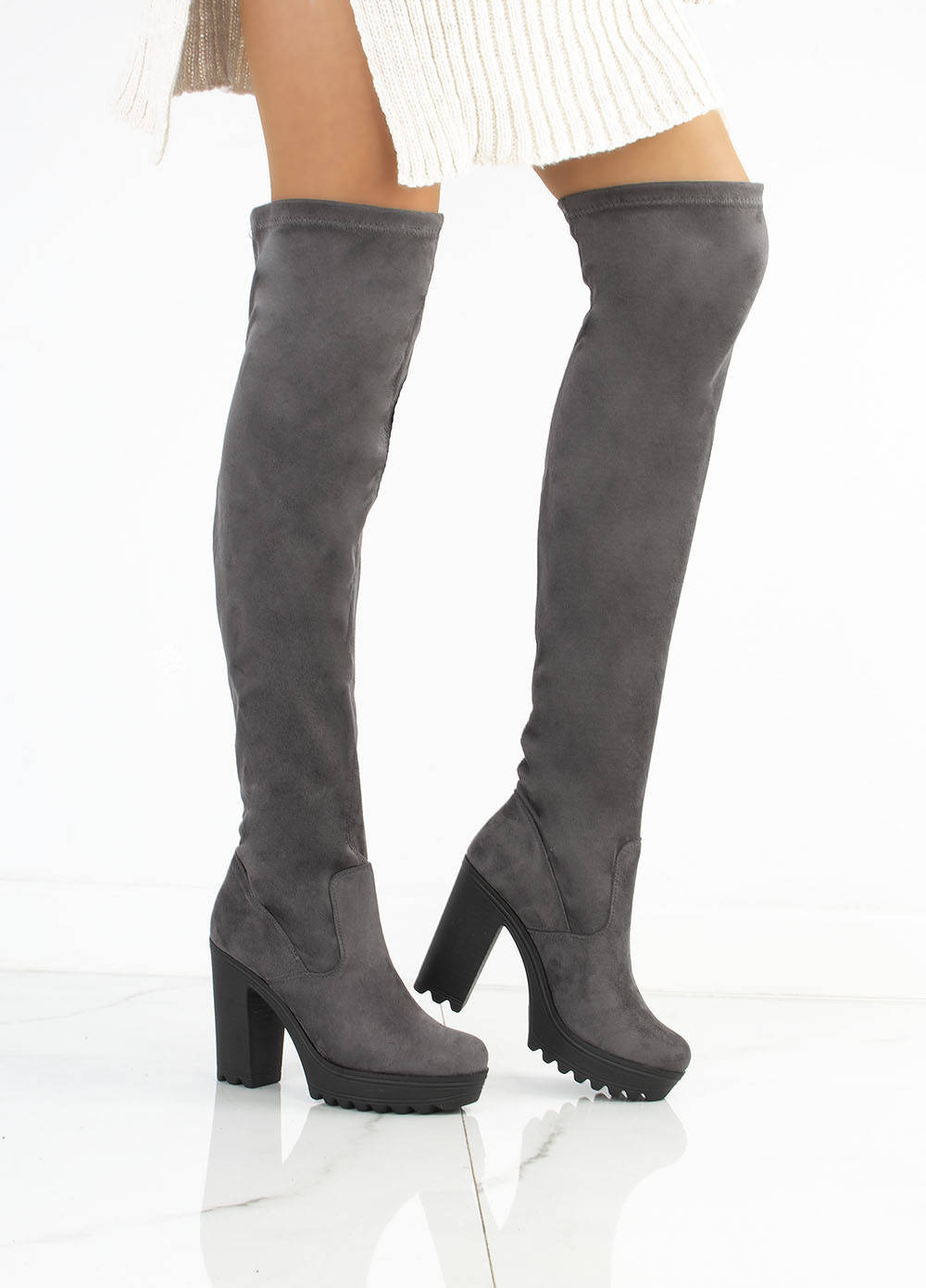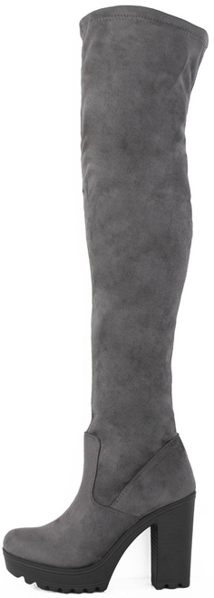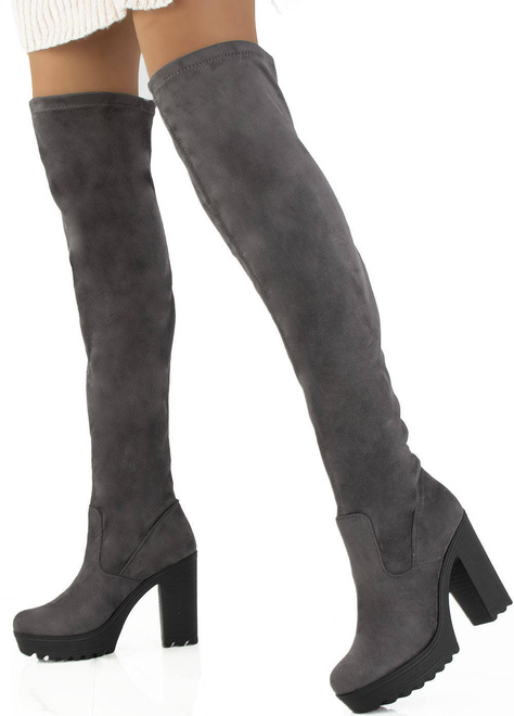 Kozaki damskie wykonane z ekologicznego zamszu. Model na stabilnym słupku. Wewnątrz delikatne ocieplenie w stopie. Sprawdzą się świetnie zarówno w codziennych jak i bardziej eleganckich stylizacjach.