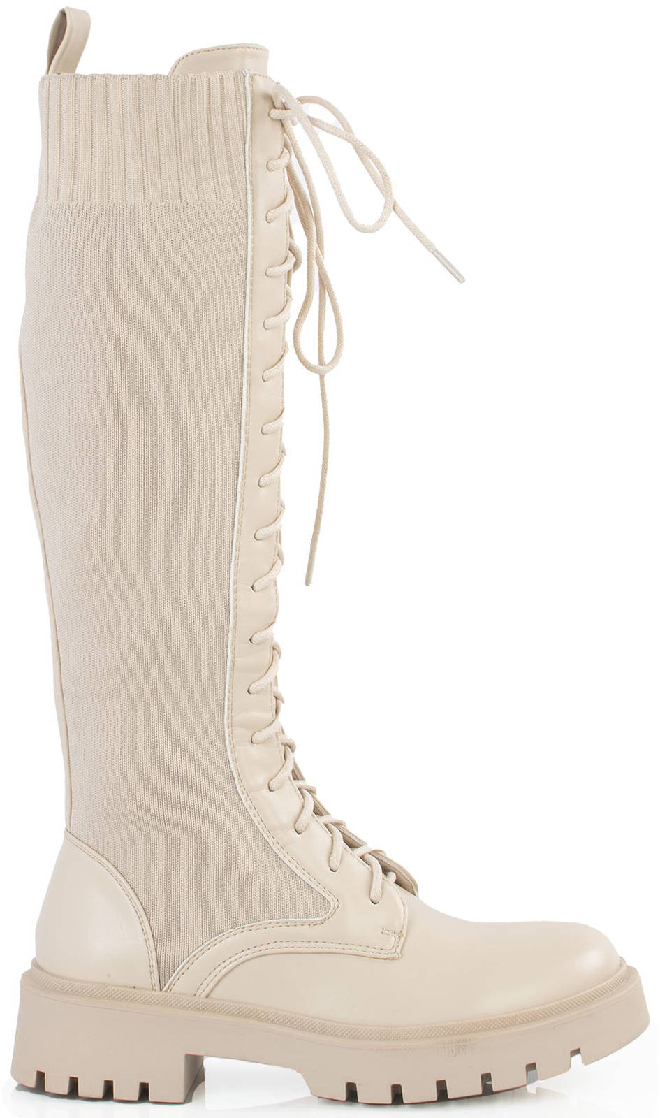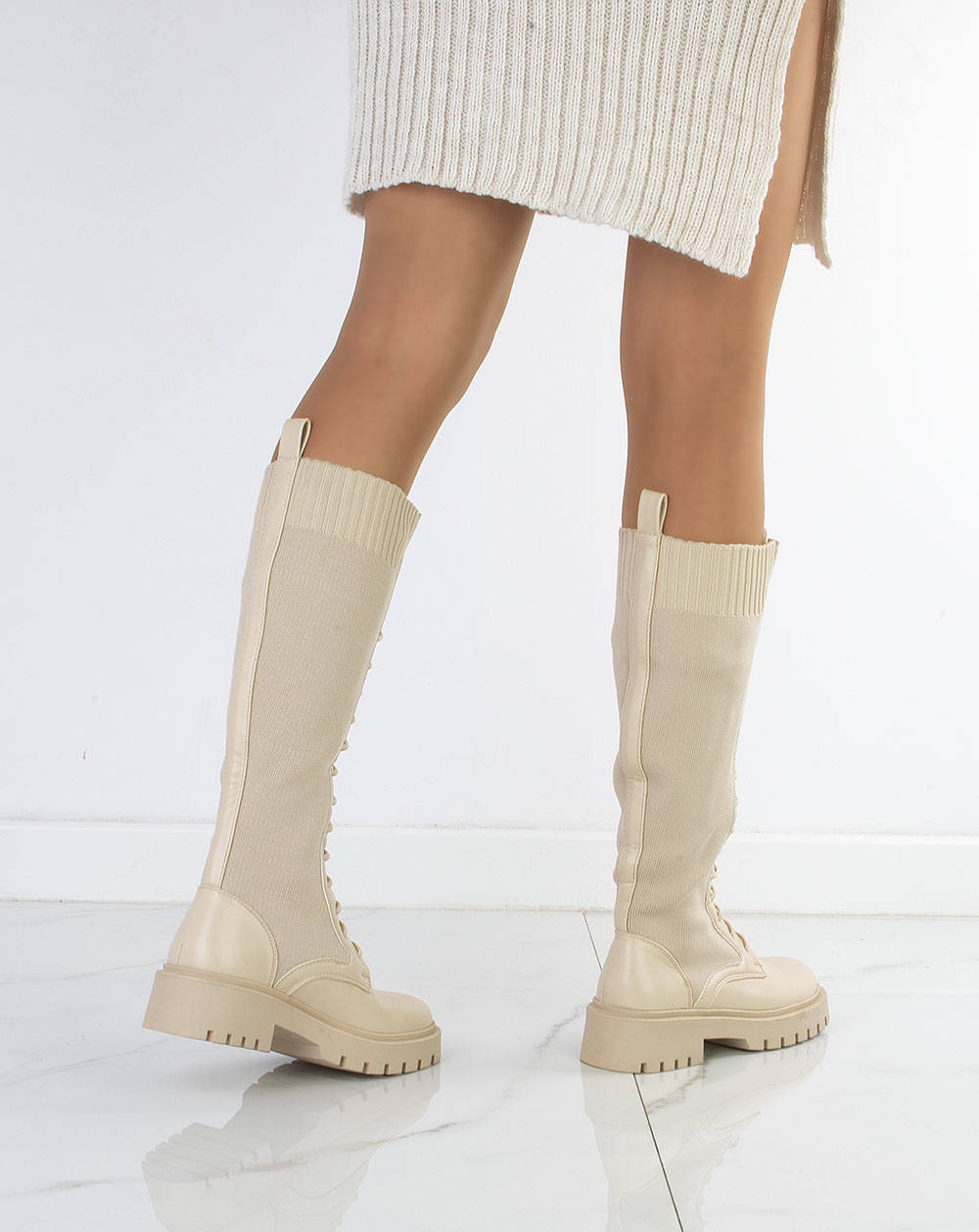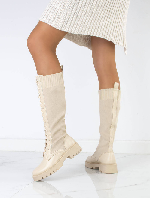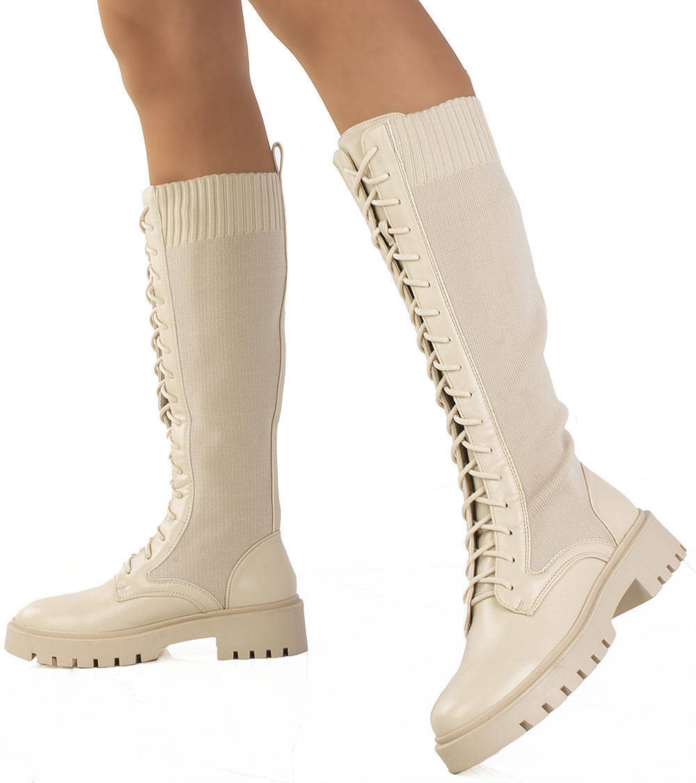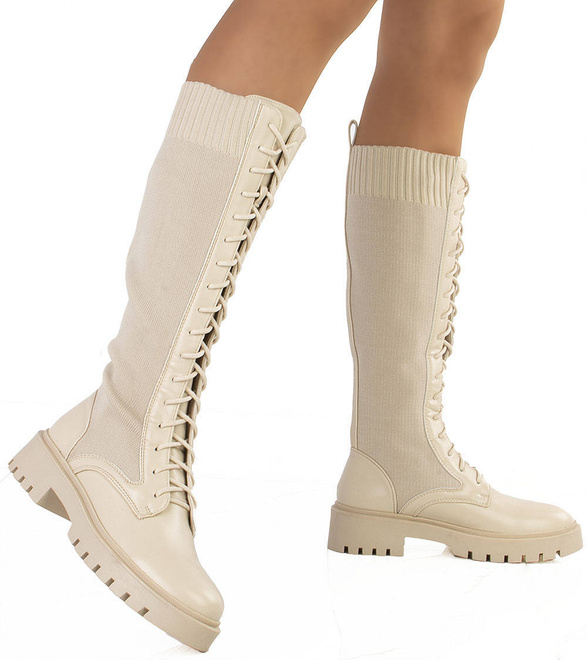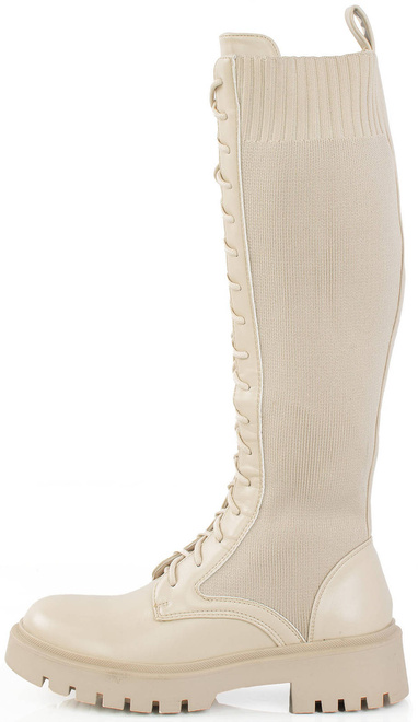 Wysokie trapery damskie wykonane z wysokogatunkowej skóry ekologicznej elastyczną tkaninową cholewką. Model wiązany sznurowadłami. Antypoślizgowa podeszwa typu traper idealnie sprawdzi się w jesienno/zimowych warunkach.