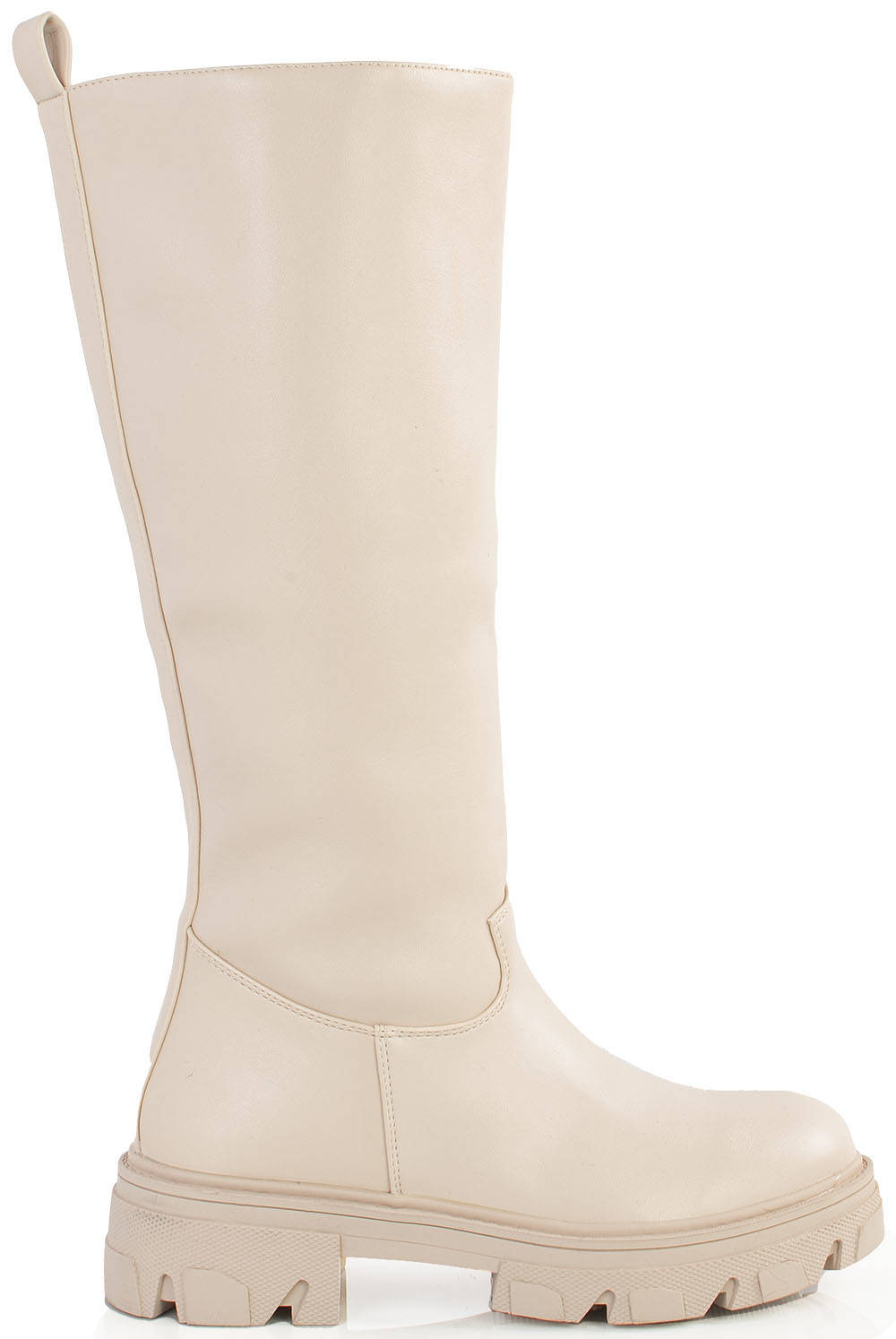 BEŻOWE SKÓRZANE KOZAKI OFICERKI PLATFORMA