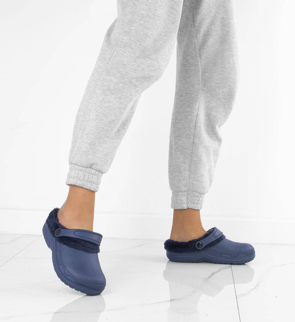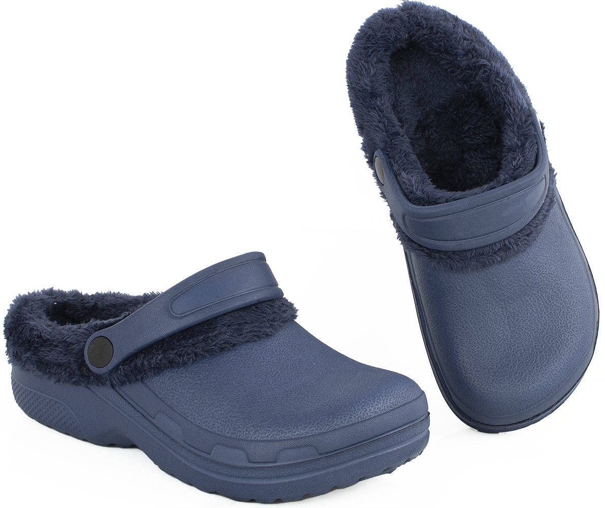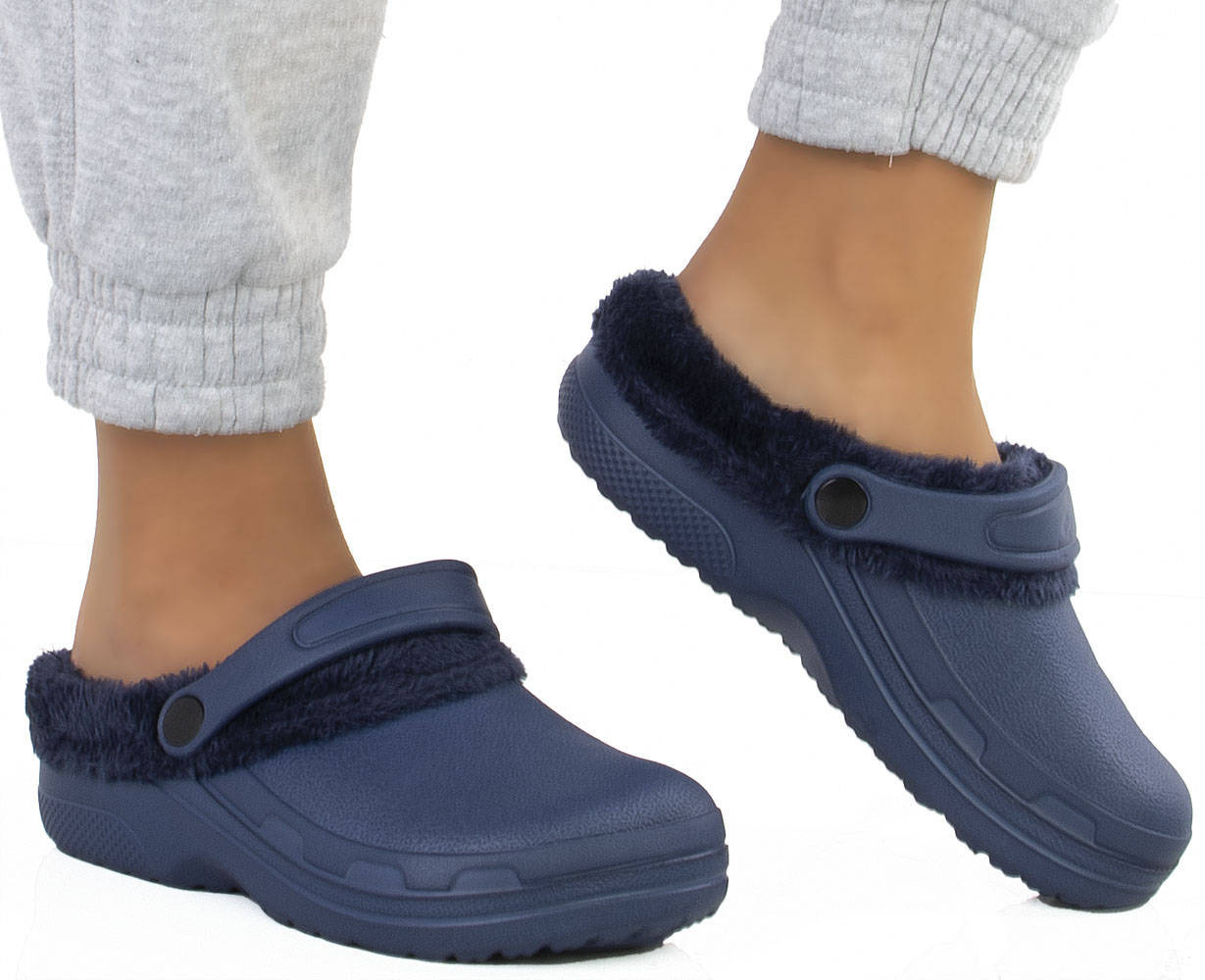GRANATOWE OCIEPLANE KLAPKI CHODAKI KROKSY