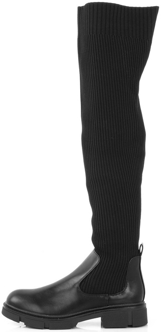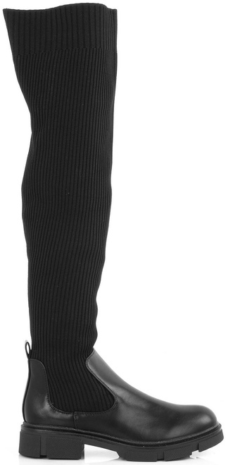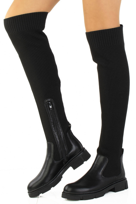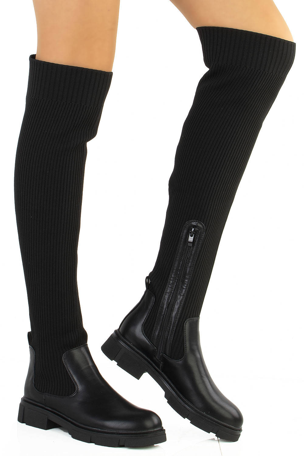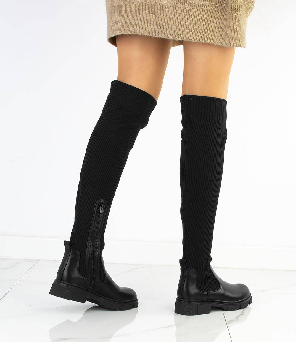 Czarne kozaki za kolano wykonane z mięciutkiej skóry ekologicznej. Lekko elastyczny materiał sprawi, że buty pięknie dopasują się do Twoich nóg. Wewnątrz ocieplenie w postaci mięciutkiego polaru. Najwygodniejszy model na platformie pasujący do wielu stylizacji. Zapinane na suwak.
