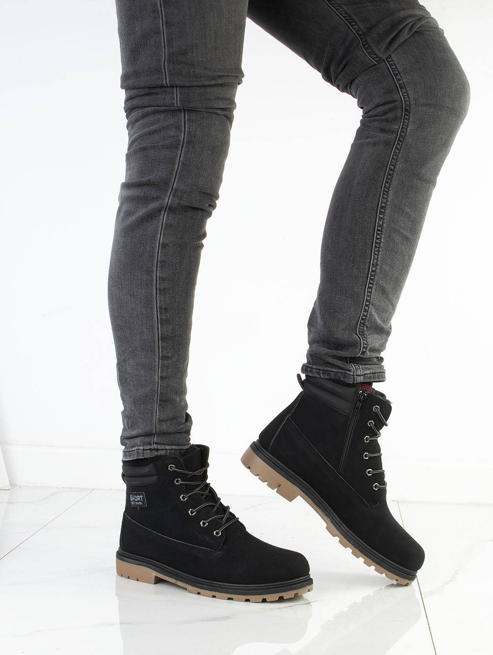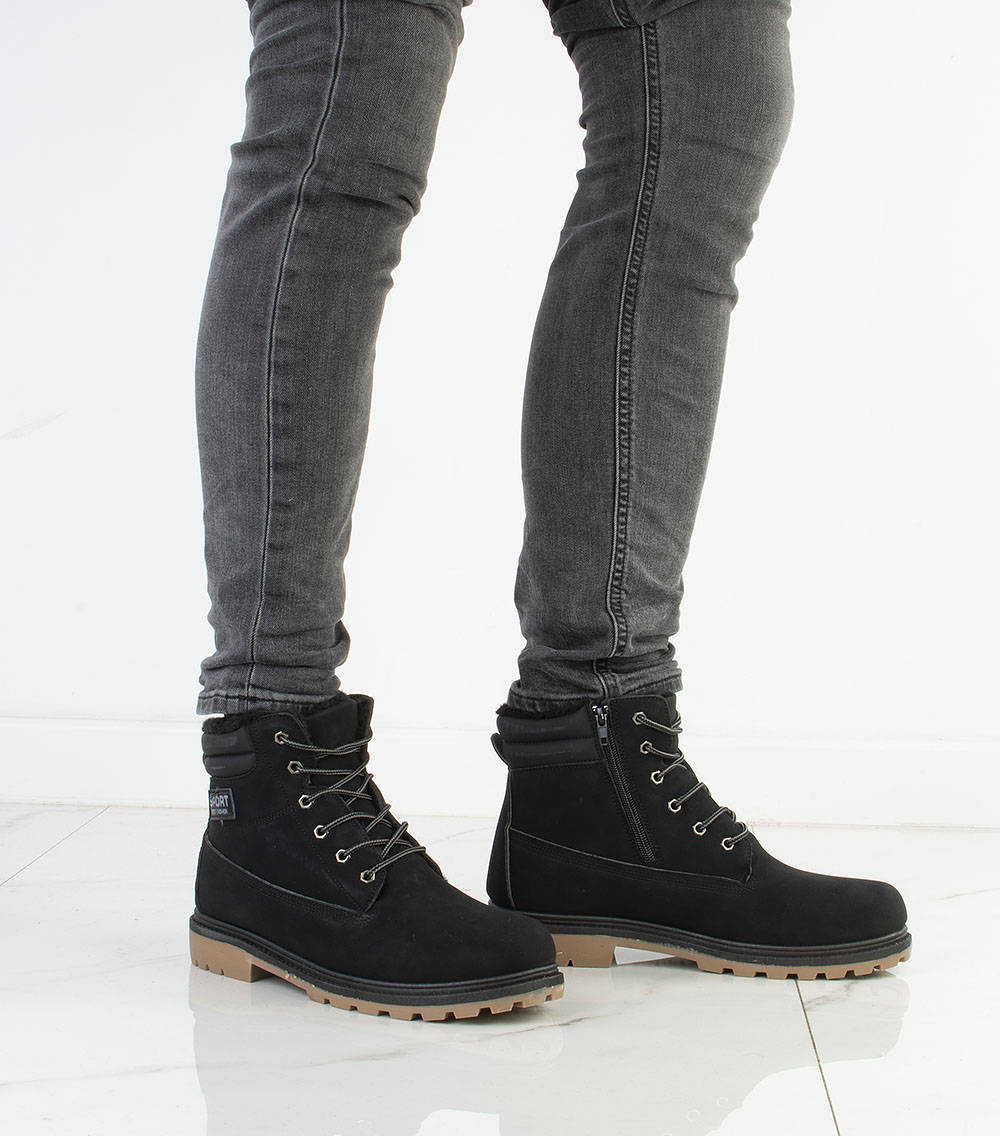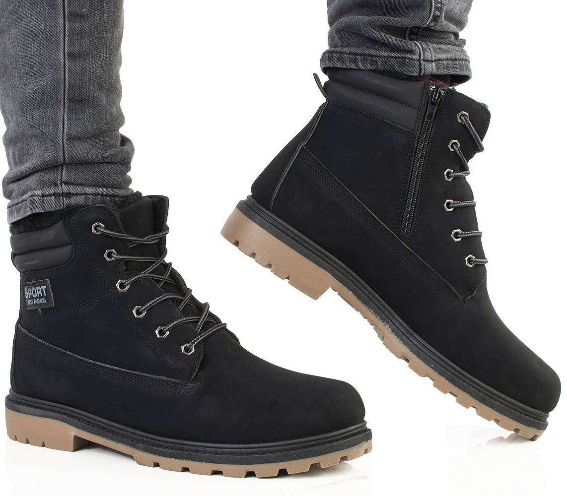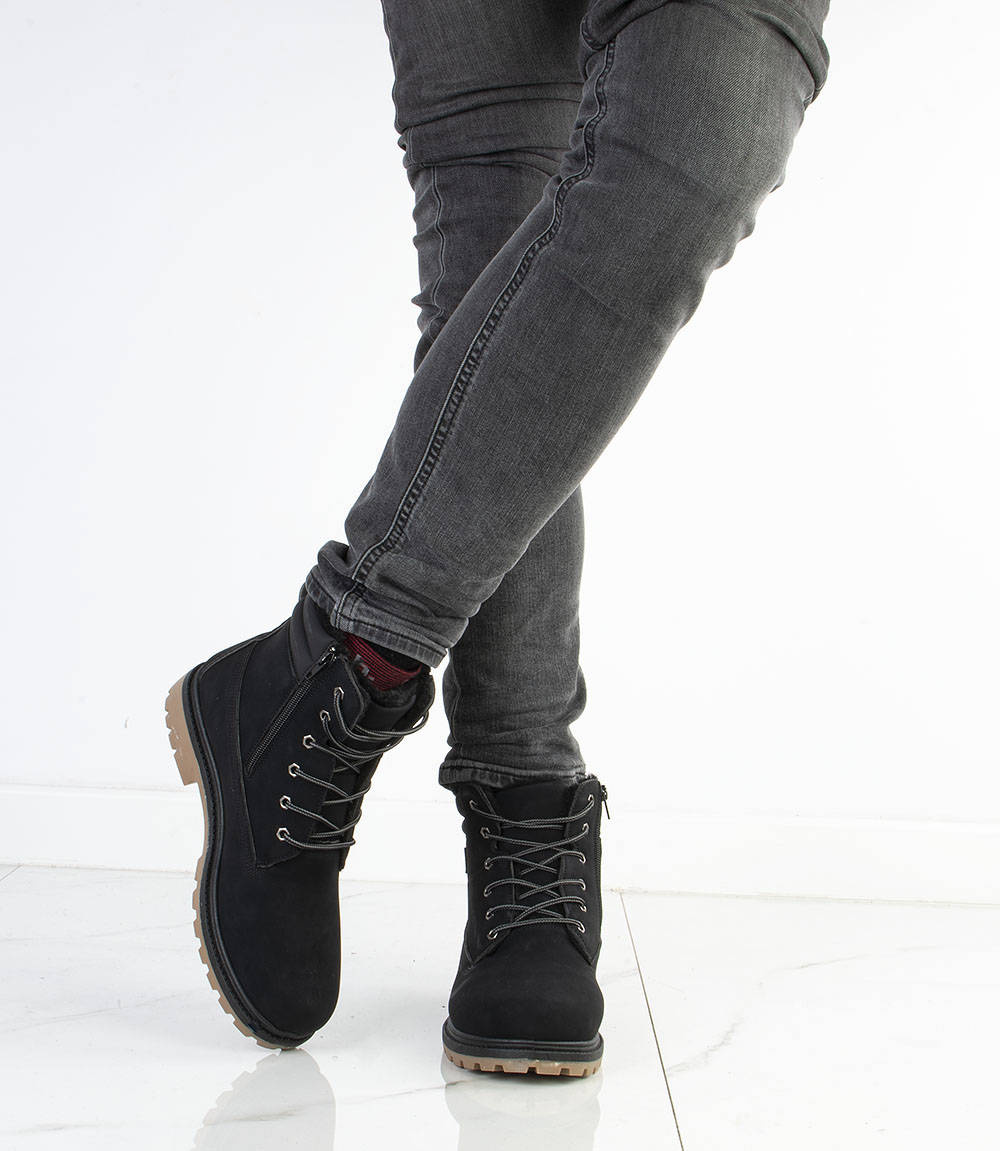 Najmodniejszy i ponadczasowy model traperów. Zewnątrz cholewka z matowej skóry ekologicznej, wewnątrz ocieplone miękkim i ciepłym futerkiem. Wygodna, antypoślizgowa podeszwa typu traper. Trapery męskie, sznurowane. Klasyka i wygoda w jednym!