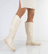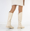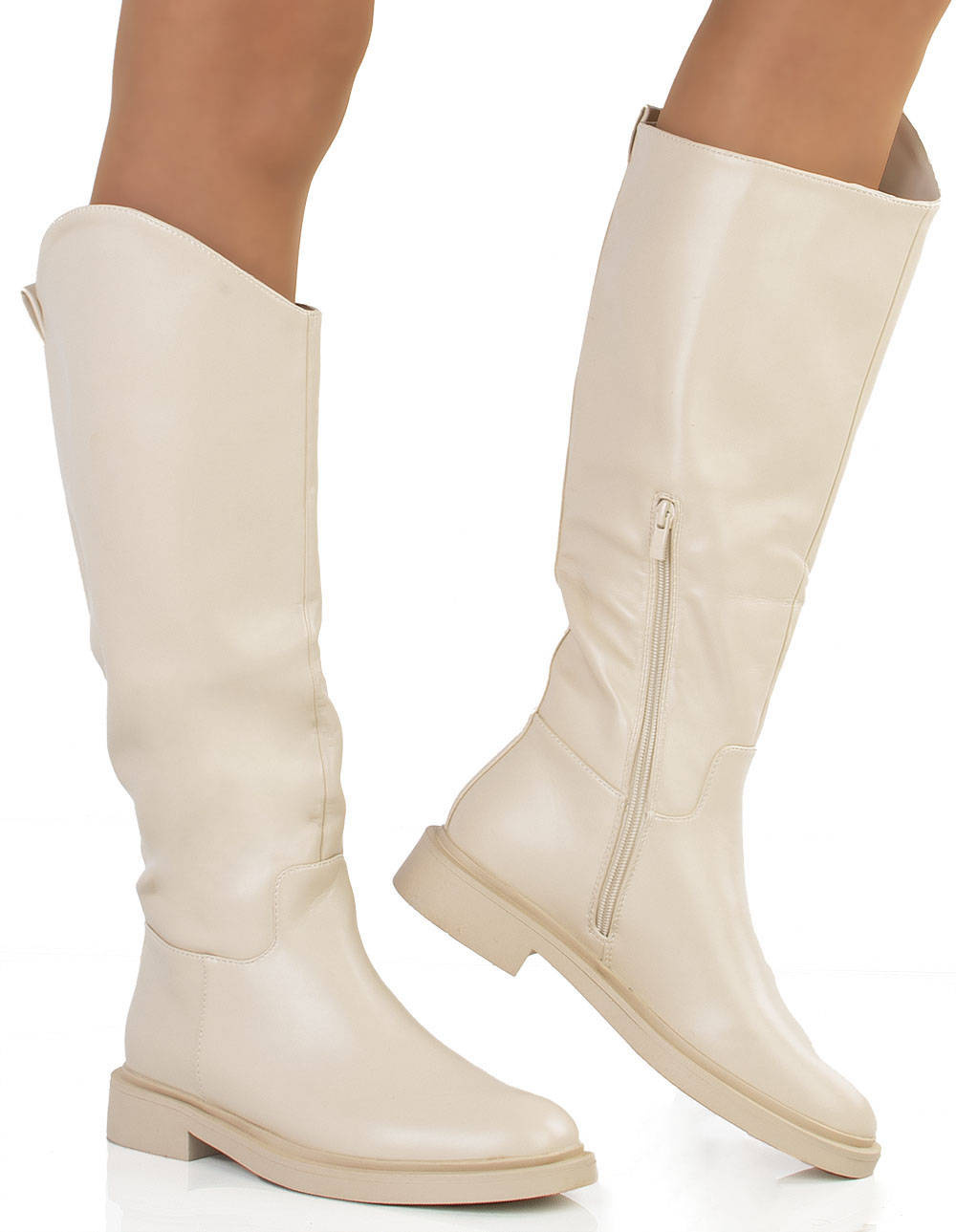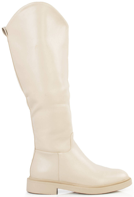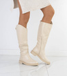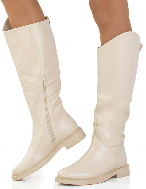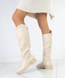 BEŻOWE SKÓRZANE KOZAKI OCIEPLANE OFICERKI