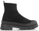 Czarne botki z cholewką z prążkowanego materiału. Cholewka to elastyczny skarpetkowy materiał, który sprawi, że buty pięknie dopasują się do Twoich nóg. Najwygodniejszy model na platformie pasujący do wielu stylizacji.