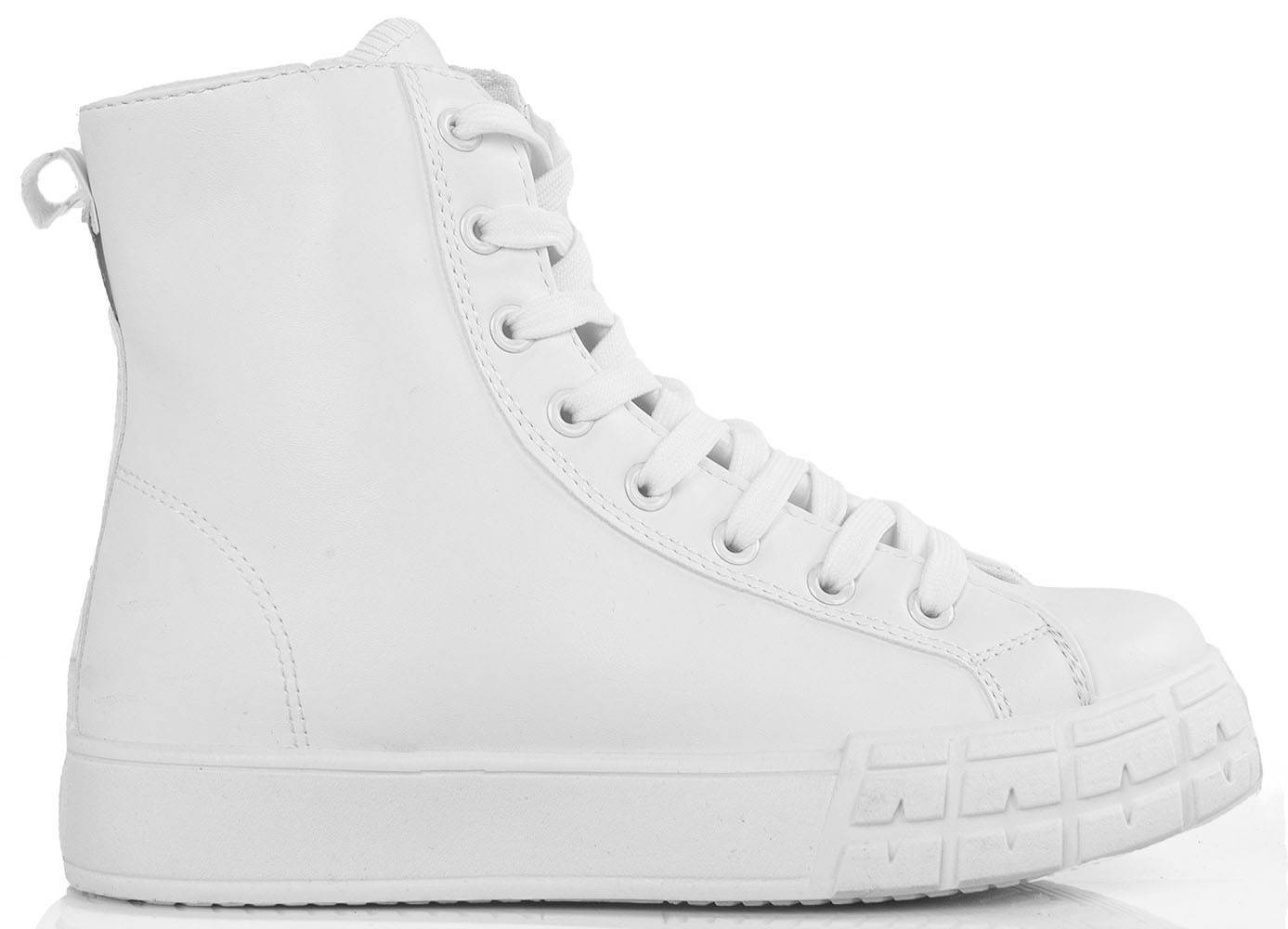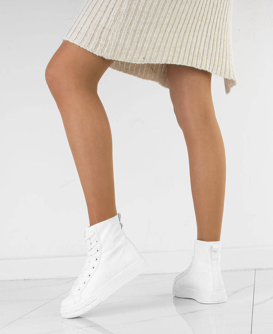 BIAŁE SKÓRZANE TRAMPKI BOTKI PLATFORMA ANILA