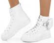 Trampki a'la botki wykonane z ekoskóry. Posiadają platformę z tworzywa gumowego oraz odpinany pasek z kieszonką. Cholewka za kostkę, obuwie sznurowane. Podeszwa miękka, antypoślizgowa.