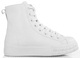Trampki a'la botki wykonane z ekoskóry. Posiadają platformę z tworzywa gumowego oraz odpinany pasek z kieszonką. Cholewka za kostkę, obuwie sznurowane. Podeszwa miękka, antypoślizgowa.