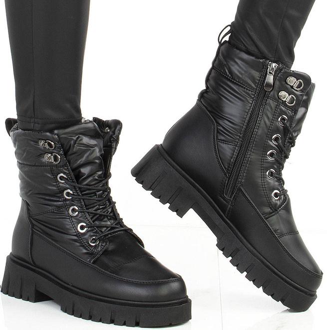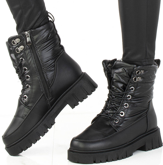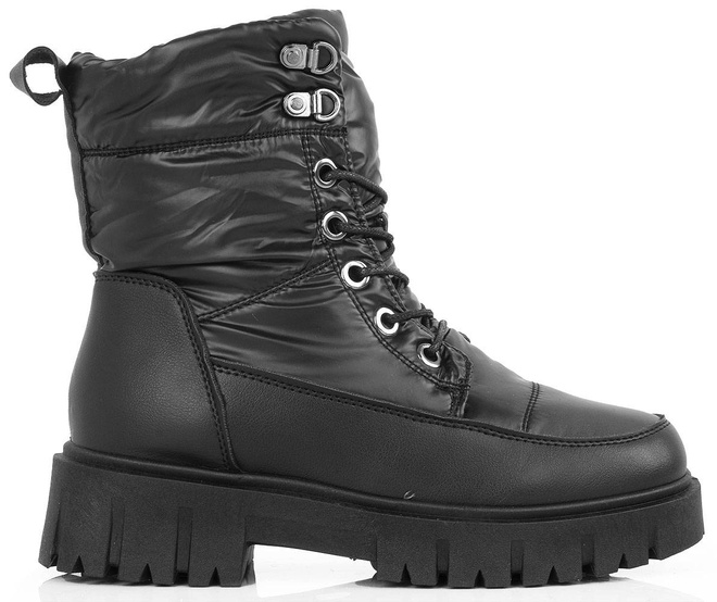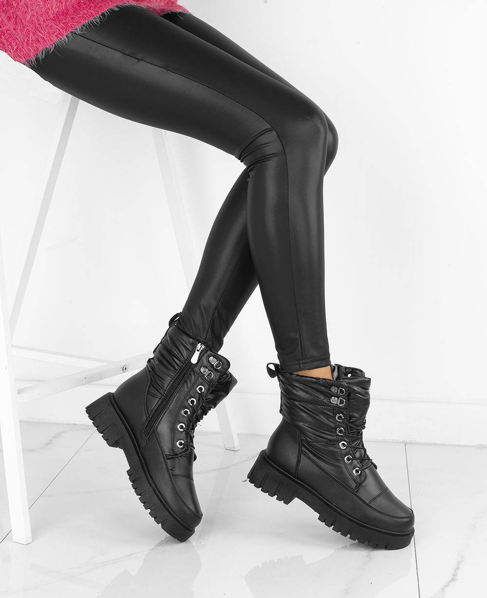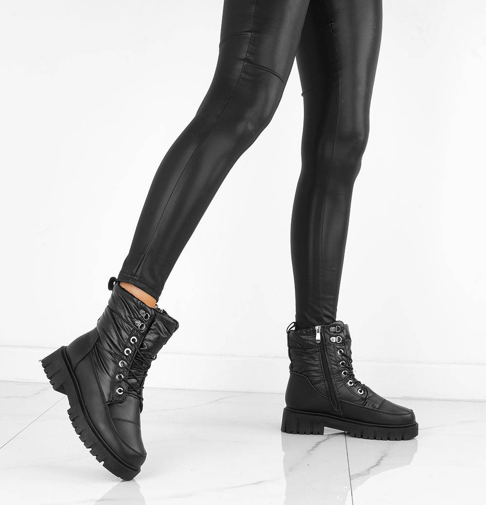 Niezwykle ciepłe śniegowce damskie z najwyższej jakości ekoskóry. Gruba, antypoślizgowa podeszwa sprawdzi się w każdych zimowych warunkach. Wewnątrz botki ocieplone ciepłym i miłym w dotyku futerkiem. Sznurowanie oraz dodatkowo dla ułatwienia zakładania botki posiadają również zapięcie na suwak. Będą modnym dodatkiem do każdej stylizacji.