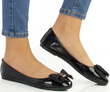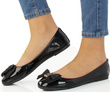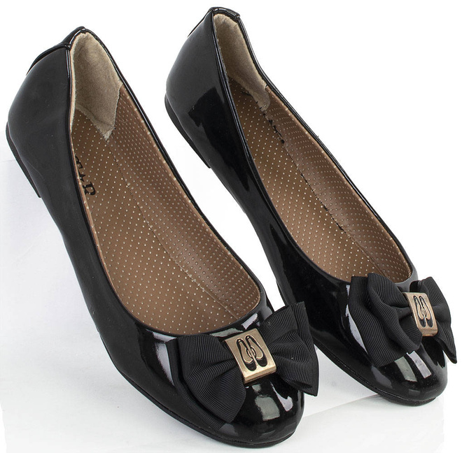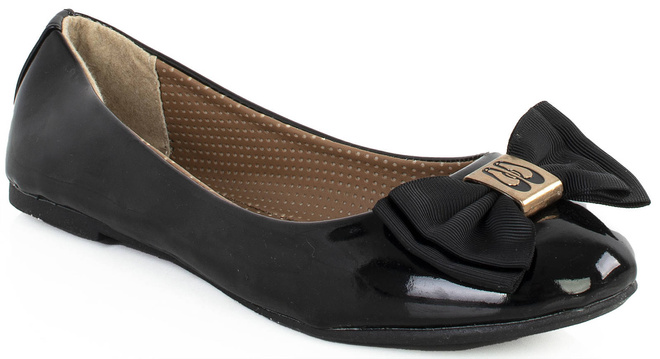Klasyczny model balerinek damskich wykonany ze skóry ekologicznej lakierowanej. Model na płaskiej podeszwie z ozdobną kokardką na przodzie. Pasuje do każdej codziennej stylizacji, zarówno do sukienek jak i spodni!