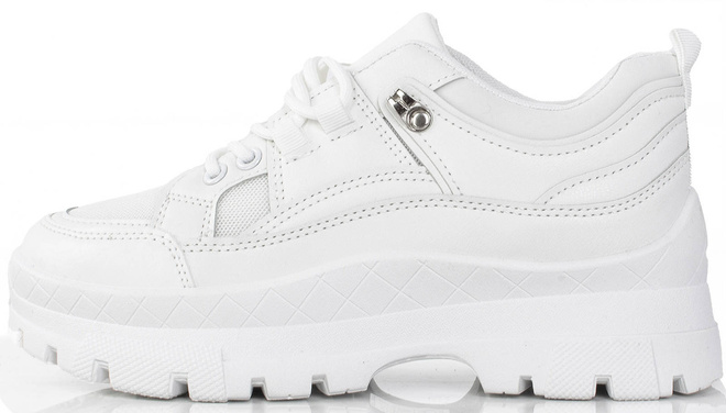 Sportowe sneakersy damskie ze skóry ekologicznej. Materiał komfortowy i łatwy w czyszczeniu. Miękka i tkaninowa wkładka wewnątrz buta zapewnia wygodę w użytkowaniu. Profilowana i antypoślizgowa podeszwa stabilizuje stopę w ruchu. Obuwie doskonale wygląda na nodze i jest idealnym dopełnieniem do codziennych i sportowych stylizacji.